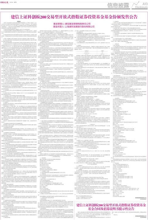 建信上证科创板200交易型开放式指数证券投资基金基金合同及招募说明书提示性公告