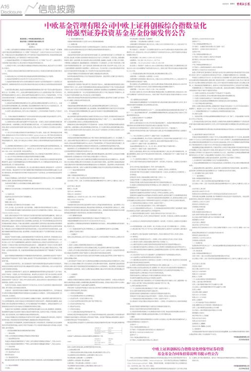 中欧上证科创板综合指数量化增强型证券投资