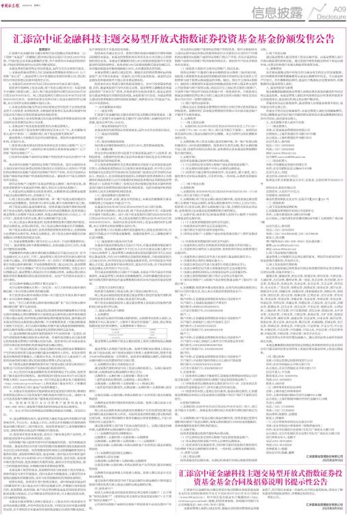 汇添富中证金融科技主题交易型开放式指数证券投资基金基金合同及招募说明书提示性公告
