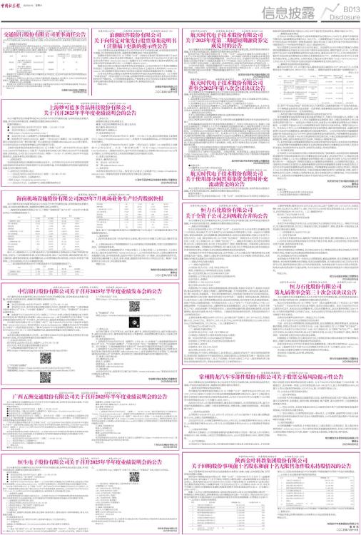 海南机场设施股份有限公司2025年7月机场业务生产经营数据快报