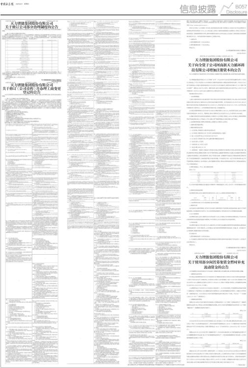 证券代码:301152 证券简称:天力锂能 公告编号:2025-069 天力锂能集团股份有限公司 关于修订公司部分治理制度的公告 本公司及董事会全体成员保证信息披露的内容真实、准确、完整,没有虚假记载、误导性陈述或重大遗漏。 一、修订公司部分治理制度相关情况 根据《中华人民共和国公司法》《上市公司章程指引》等相关法律法规和规范性文件的规定,结合实际情况,天力锂能集团股份有限公司(以下简称“公司”)拟修订相关治理制度。公司于2025年8月20日召开第四届董事会第十六次会议,审议通过了《关于修订公司部分治理制度的议案》。该议案部分内容尚需提交公司2025年第四次临时股东大会审议。具体情况如下: ■ 上述序号1-9制度尚需提交公司股东大会审议,其中,第1-2项需以特别决议方式审议通过,第3-9项需以普通决议方式审议通过。其余制度自董事会审议通过之日起生效实施。修订后的相关制度,公司已于同日披露于巨潮资讯网(http://www.cninfo.com.cn)。 二、备查文件 1、第四届董事会第十六次会议决议。 特此公告。 天力锂能集团股份有限公司董事会 2025年8月20日 证券代码:301152 证券简称:天力锂能 公告编号:2025-068 天力锂能集团股份有限公司 关于修订《公司章程》并办理工商变更登记的公告 本公司及董事会全体成员保证信息披露的内容真实、准确、完整,没有虚假记载、误导性陈述或重大遗漏。 一、修订《公司章程》部分条款的相关情况 为进一步规范公司运作水平,完善公司治理,根据《中华人民共和国公司法》、《上市公司章程指引》、《关于新〈公司法〉配套制度规则实施相关过渡期安排》、《深圳证券交易所创业板股票上市规则》及《深圳证券交易所上市公司自律监管指引第2号一创业板上市公司规范运作》等相关法律法规、规范性文件、业务规则的最新规定,天力锂能集团股份有限公司(以下简称“公司”)于2025年8月20日召开第四届董事会第十六次会议、第四届监事会第十三次会议,审议通过了《关于修订〈公司章程〉并办理工商变更登记的议案》。结合公司的自身实际情况,将由董事会审计委员会行使《公司法》规定的监事会职权,并调整监事会相关制度,公司对《天力锂能集团股份有限公司章程》(以下简称《公司章程》)相关条款进行修订。 本次《公司章程》修订要点: 1、由董事会审计委员会行使监事会职权; 2、调整股东会及董事会部分职权; 3、新增控股股东和实际控制人专节; 4、新增独立董事专节; 5、新增董事会专门委员会专节; 6、将股东会股东临时提案权所要求的持股比例由3%降低至1%; 7、完善内部审计工作的相关要求; 8、根据《中华人民共和国公司法》等相关规定同步调整表述。 除前述修订外,其他主要修订情况对比如下: ■ ■ ■ ■ ■ ■ ■ ■ ■ 除上述修订外,以下事项因不涉及实质性变更,不再逐条列示:(1)根据《公司法》《上市公司章程指引》将“股东大会”调整为“股东会”。(2)因修订导致的章节、条款序号的调整。涉及条款之间相互引用的,同样做出相应变更。《公司章程》其他条款内容不变。修订后的《公司章程》已于同日披露于巨潮资讯网(http://www.cninfo.com.cn)。 本次《关于修订〈公司章程〉并办理工商变更登记的议案》尚需提交公司股东大会并经出席股东大会的股东所持表决权的三分之二以上审议通过,同时公司董事会提请股东大会授权公司相关人员办理工商变更登记、章程备案等相关手续,授权有效期限自股东大会审议通过之日起至工商变更登记和章程备案办理完毕之日。本次变更具体内容最终以工商登记为准。 二、备查文件 1、第四届董事会第十六次会议决议; 2、第四届监事会第十三次会议决议。 特此公告。 天力锂能集团股份有限公司董事会 2025年8月20日 证券代码:301152证券简称:天力锂能 公告编号:2025-070 天力锂能集团股份有限公司 关于向全资子公司河南新天力循环科技有限公司增加注册资本的公告 本公司及董事会全体成员保证公告内容真实、准确和完整,没有虚假记载、误导性陈述或重大遗漏。 。 天力锂能集团股份有限公司(以下简称“公司”)于2025年8月20日召开第四届董事会第十六次会议,审议通过了《关于向全资子公司河南新天力循环科技有限公司增加注册资本的议案》。为优化子公司资产负债结构,公司拟以债权转股权的方式对全资子公司河南新天力循环科技有限公司(以下简称“新天力循环”)增资30,000万元人民币。增资完成后,新天力循环的注册资本将由现在的25,000万元人民币增加至55,000万元人民币,新天力循环仍为公司的全资子公司。 现将相关事项公告如下: 一、本次增资概述 1、新天力循环委托北京亚太联华资产评估有限公司对申报的部分负债进行评估,纳入本次评估范围的部分负债主要为新天力循环应付公司的往来款及集团管理费。在评估基准日2025年6月30日,新天力循环申报评估的部分负债账面价值为36,083.03万元,评估价值为36,083.03万元(大写:人民币叁亿陆仟零捌拾叁万零叁佰元),与申报的账面价值相比较,无增减值变动。 公司拟以债权转股权方式向全资子公司新天力循环增资30,000万元,本次增资完成后,新天力循环注册资本将增至55,000万元。增资前后,新天力循环均为公司全资子公司,公司持有其100%股权。 2、根据《深圳证券交易所创业板股票