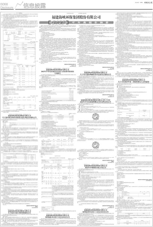 第一节重要提示 1.1本半年度报告摘要来自半年度报告全文,为全面了解本公司的经营成果、财务状况及未来发展规划,投资者应当到http://www.sse.com.cn/网站仔细阅读半年度报告全文。 1.2本公司董事会、监事会及董事、监事、高级管理人员保证半年度报告内容的真实性、准确性、完整性,不存在虚假记载、误导性陈述或重大遗漏,并承担个别和连带的法律责任。 1.3公司全体董事出席董事会会议。 1.4本半年度报告未经审计。 1.5董事会决议通过的本报告期利润分配预案或公积金转增股本预案 截至2025年6月30日,公司期末可供分配利润为人民币1,069,824,486.47元,具备实施分红的条件。公司2025年中期拟以实施权益分派股权登记日登记的总股本为基数分配利润。本次利润分配方案如下:公司拟向全体股东每10股派发现金红利0.33元(含税)。截至2025年6月30日,公司总股本570,084,039股,以此计算合计拟派发现金红利18,812,773.29元(含税)。本次公司现金分红总额占公司2025年上半年合并报表归属于上市公司股东净利润的15.15%。 如在实施权益分派股权登记日前公司总股本发生变动的,拟维持每股分配比例不变,相应调整分配总额。最终实际分配总额以实施权益分派股权登记日有权参与本次权益分派的总股数为准计算。 本方案尚需提交公司股东大会审议。 第二节公司基本情况 2.1公司简介 ■ ■ 2.2主要财务数据 单位:元币种:人民币 ■ 2.3前10名股东持股情况表 单位: 股 ■ 2.4截至报告期末的优先股股东总数、前10名优先股股东情况表 □适用√不适用 2.5控股股东或实际控制人变更情况 □适用√不适用 2.6在半年度报告批准报出日存续的债券情况 √适用□不适用 单位:元币种:人民币 ■ 反映发行人偿债能力的指标: √适用□不适用 ■ 第三节重要事项 公司应当根据重要性原则,说明报告期内公司经营情况的重大变化,以及报告期内发生的对公司经营情况有重大影响和预计未来会有重大影响的事项 □适用√不适用 股票代码:603817股票简称:海峡环保 公告编号:2025-049 福建海峡环保集团股份有限公司 关于使用部分闲置募集资金进行现金管理的公告 本公司董事会及全体董事保证本公告内容不存在任何虚假记载、误导性陈述或者重大遗漏,并对其内容的真实性、准确性和完整性承担法律责任。 重要内容提示: ● 基本情况 ■ ● 已履行的审议程序 2025年8月26日,公司召开第四届董事会第十六次会议、第四届监事会第十次会议,审议通过了《关于使用部分闲置募集资金进行现金管理的议案》。公司保荐机构对本事项发表了无异议的核查意见。根据《公司章程》等有关规定,本次现金管理事项无需提交公司股东大会审议。 ● 特别风险提示 公司及子公司将选择由具有合法经营资格的商业银行、证券公司等金融机构发行的安全性高、流动性好、投资期限不超过12个月的现金管理产品,但仍不排除因市场波动、宏观金融政策变化等原因引起的影响收益的情况。敬请广大投资者注意投资风险。 一、投资情况概述 (一)投资目的 为提高募集资金使用效率,在不影响公司募集资金投资项目实施、保证募集资金安全的前提下,公司将合理使用部分闲置募集资金进行现金管理,提高募集资金使用效率,保障公司股东的利益。 (二)投资金额 公司拟使用总额不超过人民币1亿元(含前述投资的收益进行再投资的金额)的闲置募集资金进行现金管理,使用期限自董事会审议通过之日起12个月内有效。在上述额度及期限内,资金可循环滚动使用。 (三)资金来源 1.本次现金管理的资金来源为部分暂时闲置募集资金。 2.募集资金的基本情况 经中国证券监督管理委员会出具的《关于核准福建海峡环保集团股份有限公司非公开发行股票的批复》(证监许可〔2022〕501号)文核准,福建海峡环保集团股份有限公司(以下简称“公司”)向特定投资者非公开发行人民币普通股(A股)股票84,158,415股,发行价格为每股人民币6.06元,共计募集资金509,999,994.90元,扣除保荐承销费、律师费、审计验资费、股份登记费、用于本次发行的信息披露费及其他发行费用后,本公司募集资金净额为502,703,619.02元。上述募集资金到位情况经信永中和会计师事务所(特殊普通合伙)验证,并由其出具“XYZH/2022XMAA10155”号《验资报告》。 公司对募集资金采取了专户存储管理,并已与保荐机构、存放募集资金的银行签署了《募集资金监管协议》。 公司本次非公开发行股票投资项目及募集资金使用计划具体情况如下: ■ (四)投资方式 公司拟选择由具有合法经营资格的商业银行、证券公司等金融机构发行的安全性高、流动性好、投资期限不超过12个月的现金管理产品,包括但不限于银行定期存款、结构性存款、收益凭证等。上述产品不得用于质押,产品专用结算账户不得存放非募集资金或用作其他用途,不得用于以证券投资为目的的投资行为。 本次现金管理所获得的收益将严格按照中国证监会及上海证券交易所关于募集资金监管措施的要求进行管理和使用。 (五)投资期限 上述额度的使用期限自董事会审议通过之日起12个月内有效。 (六)实施方式 公司董事会授权公司经营层在审批的额度内全权办理现金管理相关事项,包括但不限于签署相关合同及具体实施相关事宜。 二、审议程序 公司于2025年8月26日召开第四届董事会第十六次会议、第四届监事