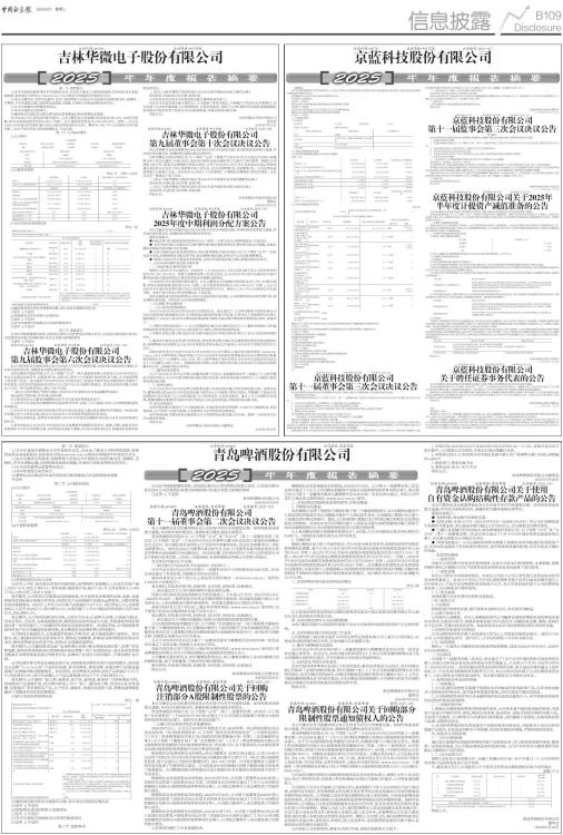 第一节 重要提示 1.1本半年度报告摘要来自半年度报告全文,为全面了解本公司的经营成果、财务状况及未来发展规划,投资者应当到www.sse.com.cn网站仔细阅读半年度报告全文。 1.2本公司董事会及董事、高级管理人员保证半年度报告内容的真实性、准确性、完整性,不存在虚假记载、误导性陈述或重大遗漏,并承担个别和连带的法律责任。 1.3公司全体董事出席董事会会议。 1.4本半年度报告未经审计。 1.5董事会决议通过的本报告期利润分配预案或公积金转增股本预案 不适用 第二节 公司基本情况 2.1公司简介 ■ ■ 2.2主要财务数据 单位:元 币种:人民币 ■ 2.3经营情况的讨论与分析 2025年上半年,面对复杂多变的市场环境,国内啤酒行业规模以上企业共实现产量1,904万千升,同比下滑0.3%(资料来源:国家统计局;统计口径:年主营业务收入2,000万元以上的全部工业法人企业)。 报告期内,公司坚持以创新驱动高质量发展,充分发挥青岛啤酒的品牌、品质、渠道网络等优势积极开拓海内外市场,持续优化产品结构提升及提高运营效率,主要经营指标保持稳健增长。2025年上半年公司实现产品销量473.2万千升,同比增长2.3%;实现营业收入人民币204.9亿元,同比增长2.1%;实现归属于上市公司股东的净利润人民币39.0亿元,同比增长7.2%。 报告期内,公司持续深耕国内市场,以增长为先导,以结构为支撑,以创新为驱动,夯实全档位、全品类、全渠道发展优势,继续推动区域市场连片开发,传统基地市场优势地位进一步巩固提升,三大战略带市场均实现量利双增长。在国际市场,公司持续推进海外市场产品分销覆盖和品牌传播,青岛啤酒全球品牌影响力持续提升。 公司坚持全渠道发力,主流渠道市场地位不断夯实,新兴渠道保持行业领先。报告期内,线上渠道持续深化运营传统平台,聚焦发力新媒体、新渠道;即时零售业务强化闪电仓、酒专营等新业态布局开发,连续5年交易额高速增长。 报告期内,公司继续推进实施“青岛啤酒主品牌+崂山啤酒全国性第二品牌”的品牌战略,聚焦体育营销和音乐营销积极开展品牌推广和产品营销活动,通过多场景营销实践提升消费者体验及强化消费者互动,品牌和产品竞争力持续提升,引领消费扩容升级。 公司加速培育大单品及创新品类产品,持续推进品牌优化和产品结构提升,加快青岛主品牌“1+1+1+2+N”产品组合发展,其中经典系、青岛白啤、高端生鲜1L铝瓶及超高端产品销量均保持稳健增长。报告期内,青岛啤酒主品牌共实现产品销量271.3万千升,同比增长3.9%;其中中高端以上产品实现销量199.2万千升,同比增长5.1%。 报告期内,公司聚焦“新人群、新需求、新产品、新渠道、新场景”开辟新增长空间,持续推动产品创新升级,报告期内研发上市了“轻干、樱花味白啤、浑浊IPA及全麦国潮、全麦逸品”等多款特色产品,从个性化、健康化、高端化及创新口感、便携包装等维度满足了消费者多层次的消费需求。 2.4前10名股东持股情况表 单位: 股 ■ 2.5截至报告期末的优先股股东总数、前10名优先股股东情况表 □适用 √不适用 2.6控股股东或实际控制人变更情况 □适用 √不适用 2.7在半年度报告批准报出日存续的债券情况 □适用 √不适用 第三节 重要事项 公司应当根据重要性原则,说明报告期内公司经营情况的重大变化,以及报告期内发生的对公司经营情况有重大影响和预计未来会有重大影响的事项 □适用 √不适用 青岛啤酒股份有限公司 2025年8月26号 证券代码:600600 证券简称:青岛啤酒 公告编号:2025-024 青岛啤酒股份有限公司 第十一届董事会第二次会议决议公告 本公司董事会及全体董事保证本公告内容不存在任何虚假记载、误导性陈述或者重大遗漏,并对其内容的真实性、准确性和完整性承担法律责任。 青岛啤酒股份有限公司(以下简称“公司”或“本公司”)第十一届董事会第二次会议(以下简称“会议”)于2025年8月26日在青啤大厦1905会议室以现场结合视频会议方式召开。会议通知及会议材料已于会前向全体董事发出,会议应出席董事9人,实际出席董事9人。本次会议由公司董事长姜宗祥先生主持,公司董事会秘书侯秋燕先生和证券事务代表孙晓航先生列席会议。会议的召集、召开程序符合《中华人民共和国公司法》等现行法律法规、上市地上市规则和《青岛啤酒股份有限公司章程》的规定。 会议审议并通过以下议案: 一、审议通过公司2025年半年度报告(未经审计)。 公司于2025年8月25日召开的第十一届董事会审计与内控委员会2025年第二次会议审议通过了本项议案,同意提交本次会议审议。 具体内容详见公司于同日在上海证券交易所网站(www.sse.com.cn)发布的《2025年半年度报告》。 表决情况:有权表决票9票,同意9票、反对0票、弃权0票,议案通过。 二、审议通过关于公司开展结构性存款业务的议案。 同意公司在保证资金流动性和安全性的基础上,于未来12个月内(2025年9月30日-2026年9月29日),使用闲置自有资金开展结构性存款业务,单日最高余额不超过人民币60亿元,上述认购资金可循环滚动使用。本议案无需提交公司股东会审议。 具体内容详见公司于同日在上海证券交易所网站(www.sse.com.cn)发布的《关于使用自有资金认购结构性存款产品的公告》。 表决情况:有权表决票9票,同意9票、反对0票、弃权0票,议案通过。 三、审议通过关于回购注
