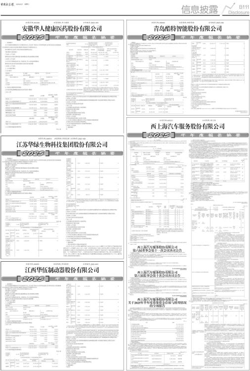 证券代码:300095 证券简称:华伍股份 公告编号:2025-069 一、重要提示 本半年度报告摘要来自半年度报告全文,为全面了解本公司的经营成果、财务状况及未来发展规划,投资者应当到证监会指定媒体仔细阅读半年度报告全文。 所有董事均已出席了审议本报告的董事会会议。 非标准审计意见提示 □适用 √不适用 董事会审议的报告期利润分配预案或公积金转增股本预案 □适用 √不适用 公司计划不派发现金红利,不送红股,不以公积金转增股本。 董事会决议通过的本报告期优先股利润分配预案 □适用 √不适用 二、公司基本情况 1、公司简介 ■ 2、主要会计数据和财务指标 公司是否需追溯调整或重述以前年度会计数据 □是 √否 ■ 3、公司股东数量及持股情况 单位:股 ■ ■ 持股5%以上股东、前10名股东及前10名无限售流通股股东参与转融通业务出借股份情况 □适用 √不适用 前10名股东及前10名无限售流通股股东因转融通出借/归还原因导致较上期发生变化 □适用 √不适用 公司是否具有表决权差异安排 □是 √否 4、控股股东或实际控制人变更情况 控股股东报告期内变更 □适用 √不适用 公司报告期控股股东未发生变更。 实际控制人报告期内变更 □适用 √不适用 公司报告期实际控制人未发生变更。 5、公司优先股股东总数及前10名优先股股东持股情况表 公司报告期无优先股股东持股情况。 6、在半年度报告批准报出日存续的债券情况 □适用 √不适用 三、重要事项 不适用