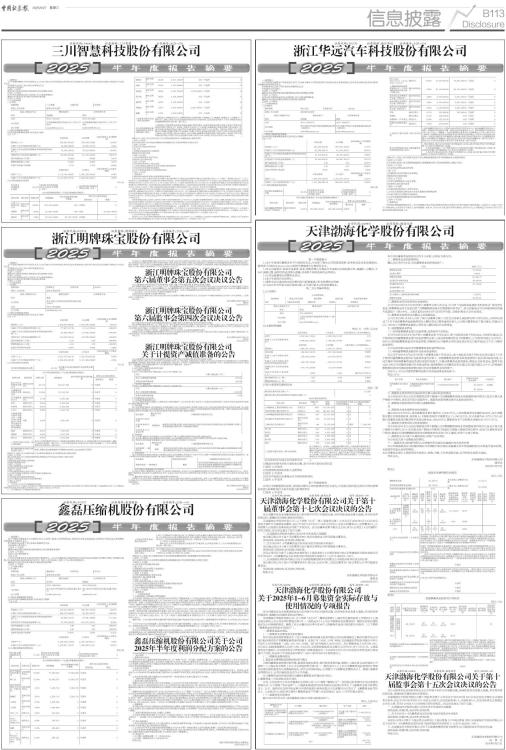 证券代码:002574 证券简称:明牌珠宝 公告编号:2025-030 浙江明牌珠宝股份有限公司 一、重要提示 本半年度报告摘要来自半年度报告全文,为全面了解本公司的经营成果、财务状况及未来发展规划,投资者应当到证监会指定媒体仔细阅读半年度报告全文。 所有董事均已出席了审议本报告的董事会会议。 非标准审计意见提示 □适用 √不适用 董事会审议的报告期利润分配预案或公积金转增股本预案 □适用 √不适用 公司计划不派发现金红利,不送红股,不以公积金转增股本。 董事会决议通过的本报告期优先股利润分配预案 □适用 √不适用 二、公司基本情况 1、公司简介 ■ 2、主要会计数据和财务指标 公司是否需追溯调整或重述以前年度会计数据 □是 √否 ■ 3、公司股东数量及持股情况 单位:股 ■ 持股5%以上股东、前10名股东及前10名无限售流通股股东参与转融通业务出借股份情况 □适用 √不适用 前10名股东及前10名无限售流通股股东因转融通出借/归还原因导致较上期发生变化 □适用 √不适用 4、控股股东或实际控制人变更情况 控股股东报告期内变更 □适用 √不适用 公司报告期控股股东未发生变更。 实际控制人报告期内变更 □适用 √不适用 公司报告期实际控制人未发生变更。 5、公司优先股股东总数及前10名优先股股东持股情况表 □适用 √不适用 公司报告期无优先股股东持股情况。 6、在半年度报告批准报出日存续的债券情况 □适用 √不适用 三、重要事项 (一)公司对子公司日月光能提供担保进展 2025年3月17日,公司就子公司浙江日月光能科技有限公司与温州银行股份有限公司绍兴柯桥支行的授信业务签署了《最高额保证合同》,公司提供连带责任保证担保,担保金额人民币2000万元。详见公司2025-007号公告 (二)公司增加对子公司提供担保额度预计 公司对日月光能提供额度不超过人民币20亿元的担保,对合并报表范围内的其他子公司(含新设立的纳入合并范围的子公司)提供额度不超过人民币3亿元的担保,担保范围包括但不限于申请综合授信、贷款、承兑汇票、信用证、保理、保函、融资租赁、日常经营合同涉及的履约担保等;担保种类包括保证、抵押、质押等。其中,公司对日月光能提供的日常经营合同涉及的履约担保主要用于日月光能向主设备商深圳市捷佳伟创新能源装备股份有限公司偿还债务而产生的公司潜在可能担保情形。详见公司2025-019号公告 证券代码:002574 证券简称:明牌珠宝 公告编号:2025-028 浙江明牌珠宝股份有限公司 第六届董事会第五次会议决议公告 本公司及董事会全体成员保证公告内容的真实、准确、完整,不存在虚假记载、误导性陈述或重大遗漏。 浙江明牌珠宝股份有限公司(以下简称“公司”)第六届董事会第五次会议通知于2025年8月15日发出,会议于2025年8月25日以现场加通讯方式在公司召开。会议应出席董事七人,实际出席董事七人(独立董事林明波先生以通讯方式参加),公司监事、高级管理人员列席了会议。会议由公司董事长虞阿五先生主持,会议的召开符合《公司法》及《公司章程》的有关规定。会议以书面投票表决的形式审议并通过了如下议案: 一、审议通过《关于公司2025年半年度报告及摘要的议案》 议案表决结果:同意7票;反对0票;弃权0票。 公司2025年半年度报告全文详见公司2025年8月27日披露在巨潮资讯网的相关公告,公司2025年半年度报告摘要同日还刊登于《中国证券报》、《证券时报》、《证券日报》。 特此公告。 浙江明牌珠宝股份有限公司 董事会 2025年8月27日 证券代码:002574 证券简称:明牌珠宝 公告编号:2025-029 浙江明牌珠宝股份有限公司 第六届监事会第四次会议决议公告 本公司及监事会全体成员保证信息披露的内容真实、准确、完整,没有虚假记载、误导性陈述或重大遗漏。 浙江明牌珠宝股份有限公司(以下简称“公司”)第六届监事会第四次会议通知于2025年8月15日以书面方式发出,会议于2025年8月25日在公司以现场方式召开。本次监事会会议由监事会主席虞初良先生召集和主持,会议应到监事3人,实到监事3人。会议的召集和召开符合《中华人民共和国公司法》和《公司章程》的有关规定。会议审议并以书面表决方式通过以下议案: 一、以3票同意,0票反对,0票弃权,一致审议通过《关于公司2025年半年度报告及摘要的议案》 经审核,监事会认为董事会编制和审核的公司2025年半年度报告的程序符合法律、行政法规、中国证监会的规定,报告内容真实、准确、完整地反映了公司的实际情况,不存在任何虚假记载、误导性陈述或者重大遗漏。 特此公告。 浙江明牌珠宝股份有限公司 监事会 2025年8月27日 证券代码:002574 证券简称:明牌珠宝 公告编号:2025-031 浙江明牌珠宝股份有限公司 关于计提资产减值准备的公告 本公司及董事会全体成员保证信息披露的内容真实、准确、完整,没有虚假记载、误导性陈述或重大遗漏。 根据《企业会计准则》及公司执行的会计政策等相关规定,为了更加真实、准确地反映公司截止2025年6月30日的资产状况和财务状况,对合并范围内的应收票据、应收账款、其他应收款、存货、投资性房地产、固定资产、无形资产、长期股权投资、在建工程、商誉等资产进行了全面的清查和分析,按资产类别进行了减值测试,对存在减值迹象的资产拟计提相应的