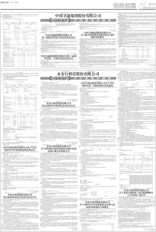 第一节 重要提示 1.1本半年度报告摘要来自半年度报告全文,为全面了解本公司的经营成果、财务状况及未来发展规划,投资者应当到www.sse.com.cn网站仔细阅读半年度报告全文。 1.2本公司董事会、监事会及董事、监事、高级管理人员保证半年度报告内容的真实性、准确性、完整性,不存在虚假记载、误导性陈述或重大遗漏,并承担个别和连带的法律责任。 1.3公司全体董事出席董事会会议。 1.4本半年度报告未经审计。 1.5董事会决议通过的本报告期利润分配预案或公积金转增股本预案 无 第二节 公司基本情况 2.1公司简介 ■ ■ 2.2主要财务数据 单位:元 币种:人民币 ■ 2.3前10名股东持股情况表 单位: 股 ■ ■ 2.4截至报告期末的优先股股东总数、前10名优先股股东情况表 □适用 √不适用 2.5控股股东或实际控制人变更情况 □适用 √不适用 2.6在半年度报告批准报出日存续的债券情况 □适用 √不适用 第三节 重要事项 公司应当根据重要性原则,说明报告期内公司经营情况的重大变化,以及报告期内发生的对公司经营情况有重大影响和预计未来会有重大影响的事项 □适用 √不适用 证券代码:601698 证券简称:中国卫通 公告编号:2025-047 中国卫通集团股份有限公司 第三届监事会第十次会议决议公告 本公司监事会及全体监事保证本公告内容不存在任何虚假记载、误导性陈述或者重大遗漏,并对其内容的真实性、准确性和完整性承担法律责任。 一、监事会会议召开情况 中国卫通集团股份有限公司(简称“公司”)第三届监事会第十次会议于2025年8月27日以通讯方式召开,公司于2025年8月19日以通讯方式发出了会议通知及文件。本次会议应出席的监事五名,实际出席的监事五名。会议的召开符合《中华人民共和国公司法》等有关法律、法规和《中国卫通集团股份有限公司章程》的规定,所做决议合法有效。 二、监事会会议审议情况 (一)审议通过《中国卫通2025年半年度报告》 监事会认为,公司2025年半年度报告的编制和审议程序符合法律、法规及相关监管规定;2025年半年度报告及摘要所包含的信息真实、准确地反映出公司当期的主要经营情况和财务状况,不存在虚假记载、误导性陈述或者重大遗漏。 公司2025年半年度报告全文及摘要详见2025年8月28日的《上海证券报》《中国证券报》及上海证券交易所网站www.sse.com.cn。 表决结果:5票赞成、0票弃权、0票反对,议案获得通过。 (二)审议通过《中国卫通关于航天科技财务有限责任公司的风险评估报告》 监事会认为,公司对航天科技财务有限责任公司(简称“航天财务”)的风险评估报告真实客观,充分反映了航天财务的经营资质、业务和风险状况,航天财务经营资质、内控建设、经营情况均符合开展金融服务的要求,该风险评估报告有助于公司及时有效地防范相关风险,具备客观性和公正性。 详细情况见与本公告同时刊载于上海证券交易所网站(www.sse.com.cn)的《中国卫通集团股份有限公司关于航天科技财务有限责任公司的风险持续评估报告》。 表决结果:5票赞成、0票弃权、0票反对,议案获得通过。 三、报备文件 中国卫通集团股份有限公司第三届监事会第十次会议决议 特此公告。 中国卫通集团股份有限公司监事会 2025年8月28日 证券代码:601698 证券简称:中国卫通 公告编号:2025-046 中国卫通集团股份有限公司第三届董事会第二十四次会议决议公告 本公司董事会及全体董事保证本公告内容不存在任何虚假记载、误导性陈述或者重大遗漏,并对其内容的真实性、准确性和完整性承担法律责任。 一、董事会会议召开情况 中国卫通集团股份有限公司(简称“公司”)第三届董事会第九次会议于2025年8月27日以通讯方式召开,公司于2025年8月19日以通讯方式发出了会议通知。本次会议应出席的董事九名,实际出席的董事九名。会议的召开符合《中华人民共和国公司法》等有关法律法规和《中国卫通集团股份有限公司章程》的规定,所做决议合法有效。 二、董事会会议审议情况 (一)审议通过《中国卫通2025年半年度报告》 中国卫通2025年半年度报告全文及摘要详见2025年8月28日的《上海证券报》《中国证券报》及上海证券交易所网站www.sse.com.cn。 表决结果:9票赞成、0票弃权、0票反对,议案获得通过。 本议案已经公司第三届董事会审计委员会第十三次会议、第三届董事会第十二次独立董事专门会议审议通过,董事会审计委员会、独立董事对该议案发表了同意意见。 (二)审议通过《中国卫通关于航天科技财务有限责任公司的风险评估报告》 详细情况见与本公告同时刊载于上海证券交易所网站(www.sse.com.cn)的《中国卫通关于航天科技财务有限责任公司的风险评估报告》。 表决结果:3票赞成、0票弃权、0票反对、6票回避,议案获得通过。 本议案已经公司第三届董事会审计委员会第十三次会议、第三届董事会第十二次独立董事专门会议审议通过,董事会审计委员会、独立董事对该议案发表了同意意见。 三、报备文件 中国卫通集团股份有限公司第三届董事会第二十四次会议决议 特此公告。 中国卫通集团股份有限公司 董事会 2025年8月28日 中国卫通集团股份有限公司 关于航天科技财务有限责任公司的 风险评估报告 按照《上海证券交易所上市公司自律监管指引第5号一一交易与关联交易》的要求,中国卫通集团股份有