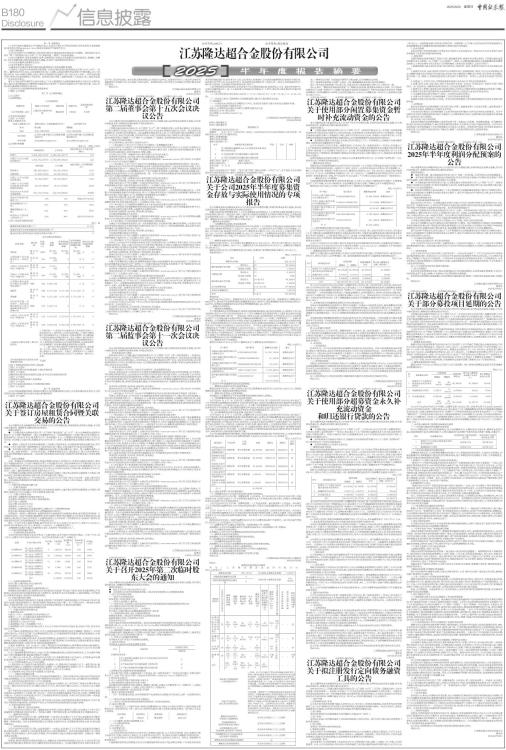 第一节 重要提示 1.1本半年度报告摘要来自半年度报告全文,为全面了解本公司的经营成果、财务状况及未来发展规划,投资者应当到www.sse.com.cn网站仔细阅读半年度报告全文。 1.2重大风险提示 公司已在本报告中详细阐述公司在经营过程中可能面临的各种风险及应对措施,具体内容详见本报告“第三节管理层讨论与分析”之“四、风险因素”,敬请广大投资者查阅。 1.3本公司董事会、监事会及董事、监事、高级管理人员保证半年度报告内容的真实性、准确性、完整性,不存在虚假记载、误导性陈述或重大遗漏,并承担个别和连带的法律责任。 1.4公司全体董事出席董事会会议。 1.5本半年度报告未经审计。 1.6董事会决议通过的本报告期利润分配预案或公积金转增股本预案 公司制定了2025年半年度利润分配预案,拟向全体股东每10股派发现金红利人民币1.80元(含税)。截至2025年6月30日,公司总股本246,857,143股,以扣减回购专用证券账户中股份数5,310,798股后的241,546,345股为基数,以此计算合计拟派发现金红利43,478,342.10元(含税)。本次利润分配不进行资本公积金转增股本,不送红股。该事项已经公司第二届董事会第十五次会议、第二届监事会第十一次会议审议通过。 鉴于公司2024年年度股东大会审议通过了《关于提请股东大会授权董事会制定中期分红方案的议案》,股东大会同意授权公司董事会在满足现金分红条件下,制定并实施2025年中期分红方案。因此,本次利润分配预案无需股东大会审议。 1.7是否存在公司治理特殊安排等重要事项 □适用 √不适用 第二节 公司基本情况 2.1公司简介 公司股票简况 ■ 公司存托凭证简况 □适用 √不适用 联系人和联系方式 ■ 2.2主要财务数据 单位:元 币种:人民币 ■ 2.3前10名股东持股情况表 单位: 股 ■ 2.4前十名境内存托凭证持有人情况表 □适用 √不适用 2.5截至报告期末表决权数量前十名股东情况表 □适用 √不适用 2.6截至报告期末的优先股股东总数、前10名优先股股东情况表 □适用 √不适用 2.7控股股东或实际控制人变更情况 □适用 √不适用 2.8在半年度报告批准报出日存续的债券情况 □适用 √不适用 第三节 重要事项 公司应当根据重要性原则,说明报告期内公司经营情况的重大变化,以及报告期内发生的对公司经营情况有重大影响和预计未来会有重大影响的事项 □适用 √不适用 证券代码:688231 证券简称:隆达股份 公告编号:2025-043 江苏隆达超合金股份有限公司 关于签订房屋租赁合同暨关联交易的公告 本公司董事会及全体董事保证本公告内容不存在任何虚假记载、误导性陈述或者重大遗漏,并对其内容的真实性、准确性和完整性承担法律责任。 重要内容提示: ● 江苏隆达超合金股份有限公司(以下简称“隆达股份”或“公司”)拟与无锡御源实业集团有限公司(以下简称“御源实业”)签订《房屋租赁合同》。本次租赁物业位于无锡市锡山区东兴路69号,租赁面积为5,643.52平方米,租赁期为五年(含免租期六个月),自御源实业将房屋实际交付公司且公司实际占有房屋之日起计算;房屋租金为1.06元/㎡/日(含税),租赁期间租金含税总金额为982.57万元。 ● 根据《上海证券交易所科创板股票上市规则》的相关规定,本次租赁事项构成关联交易,但不构成《上市公司重大资产重组管理办法》规定的重大资产重组,交易实施亦不存在重大法律障碍。 ● 本次关联交易已经公司第二届董事会2025年第三次独立董事专门会议、第二届董事会第十五次会议、第二届监事会第十一次会议审议通过,关联董事浦益龙先生、浦迅瑜女士、陈义先生回避表决。该事项尚须获得股东会的批准,与该关联交易有利害关系的关联人将放弃行使在股东会上对该议案的投票权。 一、关联交易概述 为进一步满足企业经营发展需求,增强对高精尖科创人才的吸引力,改善员工整体住宿条件,提升员工幸福感及稳定性,公司拟与御源实业签订《房屋租赁合同》,租赁其持有的位于无锡市锡山区东兴路69号的部分物业,用于扩充公司员工宿舍及活动中心。租赁面积为5,643.52平方米,租赁期为五年(含免租期六个月),自御源实业将房屋实际交付公司且公司实际占有房屋之日起计算,房屋租金为1.06元/㎡/日(含税),租赁期间租金含税总金额为982.57万元。 由于御源实业和隆达股份实际控制人均为浦益龙,根据《上海证券交易所科创板股票上市规则》等相关规定,本次租赁事项构成关联交易,但不构成重大资产重组。 截至本次关联交易为止(不含本次交易),过去12个月内公司及下属子公司与同一关联人或不同关联人之间交易标的类别相关的关联交易未达到3,000万元以上,且未占上市公司最近一期经审计总资产或市值1%以上。 二、关联方基本情况和关联关系 (一)关联关系说明 由于御源实业和隆达股份实际控制人均为浦益龙,根据《上海证券交易所科创板股票上市规则》的规定,御源实业为公司关联方,本次交易构成关联交易。 (二)关联人的基本情况 企业名称:无锡御源实业集团有限公司 企业类型:有限责任公司(自然人投资或控股) 法定代表人:浦锦瑜 成立日期:2004年7月21日 注册资本:5,000万人民币 注册地址:无锡市锡山区安镇街道吼山南路15号一号楼6楼606B室 股东信息:浦益龙持股比例为99%;浦锦瑜持股比例为1% 经营范围:一般项目:建筑装饰、水暖管道零件及其他建筑