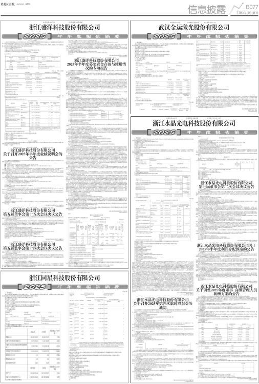 证券代码:300220 证券简称:金运激光 公告编号:2025-022 一、重要提示 本半年度报告摘要来自半年度报告全文,为全面了解本公司的经营成果、财务状况及未来发展规划,投资者应当到证监会指定媒体仔细阅读半年度报告全文。 所有董事均已出席了审议本报告的董事会会议。 非标准审计意见提示 □适用 √不适用 董事会审议的报告期利润分配预案或公积金转增股本预案 □适用 √不适用 公司计划不派发现金红利,不送红股,不以公积金转增股本。 董事会决议通过的本报告期优先股利润分配预案 □适用 √不适用 二、公司基本情况 1、公司简介 ■ 2、主要会计数据和财务指标 公司是否需追溯调整或重述以前年度会计数据 □是 √否 ■ 3、公司股东数量及持股情况 单位:股 ■ ■ 持股5%以上股东、前10名股东及前10名无限售流通股股东参与转融通业务出借股份情况 □适用 √不适用 前10名股东及前10名无限售流通股股东因转融通出借/归还原因导致较上期发生变化 □适用 √不适用 公司是否具有表决权差异安排 □是 √否 4、控股股东或实际控制人变更情况 控股股东报告期内变更 □适用 √不适用 公司报告期控股股东未发生变更。 实际控制人报告期内变更 □适用 √不适用 公司报告期实际控制人未发生变更。 5、公司优先股股东总数及前10名优先股股东持股情况表 公司报告期无优先股股东持股情况。 6、在半年度报告批准报出日存续的债券情况 □适用 √不适用 三、重要事项 报告期内,公司实现营业总收入11,584.27万元,比去年同期下降14.80%;归属于上市公司股东的净利润126.32万元,较上年同期下降3.15%;归属于上市公司股东的扣除非经常性损益的净利润-170.06万元,较上年同期亏损增加;截止本报告期末公司总资产为28,323.86万元,较年初下降5.64%;归属于上市公司股东的净资产为6,326.35万元,较年初上升2.27%;经营性现金流量净额为-2,953.40万元,同比下降766.09%。其中:激光装备制造板块实现主营业务收入10,787.54万元,同比下降10.89%;平均毛利率30.04%,同比微增0.26%。IP衍生品运营业务板块持续收缩,实现主营业务收入175.56万元,同比下降78.82%;平均毛利率55.57%,同比上升14.99%。 IP衍生品运营业务亏损是导致公司本期归属于上市公司股东扣除非经常性损益的净利润亏损的主要原因,其后续的减亏幅度对公司净利润影响较大,敬请投资者注意投资风险。 报告期内具体事项详见《2025年半年度报告全文》。 武汉金运激光股份有限公司 法定代表人:梁萍 2025年8月28日