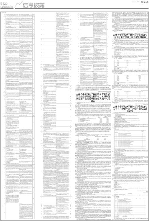 ■ ■ ■ ■ ■ ■ ■ ■ ■ ■ 除上述条款外,《公司章程》的其他条款不变,上述变更最终以工商登记机关核准的内容为准。修订后的《公司章程》与本公告同日在上海证券交易所网站(www.sse.com.cn)予以披露。 三、其他事项 1、上述变更不会对公司的日常经营产生重大影响,公司主营业务未发生实质性变化,发展战略未发生重大调整。 2、本次取消监事会、《公司章程》修订事项尚需以特别决议提请公司股东大会审议通过。修订后的《公司章程》自股东大会审议通过之日起生效,原《公司章程》自修订后的《公司章程》生效之日起废止,同时公司董事会提请股东大会授权公司经营管理层办理取消监事会、《公司章程》修订等工商变更登记备案等相关手续。公司将于股东大会审议通过后及时办理本次工商变更备案登记手续。上述变更最终以工商登记机关核准的内容为准。 特此公告。 吉林省中研高分子材料股份有限公司董事会 2025年8月28日 证券代码:688716 证券简称:中研股份 公告编号:2025-027 吉林省中研高分子材料股份有限公司 关于部分募集资金投资项目延期及部分募集资金投资项目变更实施方式的公告 本公司董事会及全体董事保证本公告内容不存在任何虚假记载、误导性陈述或者重大遗漏,并对其内容的真实性、准确性和完整性依法承担法律责任。 重要内容提示: ● 吉林省中研高分子材料股份有限公司(以下简称“公司”)于2025年8月27日召开第四届董事会第五次会议和第四届监事会第五次会议,审议通过《关于部分募集资金投资项目延期及部分募集资金投资项目变更实施方式的议案》。同意公司对首次公开发行股票募投项目之“年产5000吨聚醚醚酮(PEEK)深加工系列产品综合厂房(二期)项目”与“创新与技术研发中心项目”进行延期;同意变更首次公开发行股票募投项目之“上海碳纤维聚醚醚酮复合材料研发中心项目”的实施方式,由原计划通过公司向中研复材(上海)科技开发有限责任公司(以下简称“中研上海”)提供借款的方式变更为向中研上海增资。 ● 保荐机构国泰海通证券股份有限公司发表了无异议的核查意见。以上事项尚需提交公司股东大会审议通过。 一、募集资金基本情况 2023年7月18日,公司收到中国证券监督管理委员会出具的《关于同意吉林省中研高分子材料股份有限公司首次公开发行股票注册的批复》(证监许可﹝2023﹞1531号)(注册生效日为2023年7月12日),公司获准首次公开发行人民币普通股(A股)股票发行30,420,000股,发行价格为29.66元/股,募集资金总额为人民币902,257,200.00元,扣除102,543,821.47元(不含税)的发行费用后,募集资金净额为人民币799,713,378.53元。募集资金已于2023年9月15日划至公司指定账户,上述募集资金到位情况经大华会计师事务所(特殊普通合伙)审验,并于2023年9月15日出具了《验资报告》(大华验字【2023】000548号)。 二、募集资金投资项目的相关情况 根据《吉林省中研高分子材料股份有限公司首次公开发行股票并在科创板上市招股说明书》以及公司于2024年7月20日公告的《吉林省中研高分子材料股份有限公司关于部分募投项目变更实施主体、实施地点、投资总额、调整内部投资结构并延期的公告》(公告编号:2024-027),公司募投项目及募集资金使用计划如下: 金额单位:人民币万元 ■ 注1:公司于2024年7月18日召开了第三届董事会第二十二次会议,会议审议通过了《关于部分募投项目变更实施主体、实施地点、投资总额、调整内部投资结构并延期的议案》:调整募投项目"上海碳纤维聚醚醚酮复合材料研发中心项目"建设内容,项目总投资额由7,320.40万元调整为11,020.40万元,该项目的内部投资结构亦根据实际情况进行调整,拟使用募集资金投资额保持不变;将实施主体变更为中研复材(上海)科技开发有限责任公司;将实施地点变更至上海市闵行区都会路1500号37幢;将达到预定可使用状态日期延期至2025年12月31日。该议案已经公司2024年第二次临时股东大会审议通过。 注2:公司于2025年6月20日召开了第四届董事会第二次临时会议和第四届监事会第二次临时会议,审议通过了《关于部分募投项目调整内部投资结构及使用自有资金支付研发人员费用并以募集资金等额置换的议案》,同意公司对"上海碳纤维聚醚醚酮复合材料研发中心项目"调整内部投资结构,并同意使用自有资金支付该项目的研发人员费用,后续以募集资金等额置换,定期从募集资金专户划转等额资金至募投项目实施主体的基本存款账户或一般账户,该部分等额置换资金视同募投项目使用资金。 注3:截至2025年6月30日,公司募集资金存放与实际使用情况详见公司于2025年8月28日在上海证券交易所网站(www.sse.com.cn)披露的《吉林省中研高分子材料股份有限公司2025年半年度募集资金存放与使用情况的专项报告》。 三、关于部分募集资金投资项目延期的情况及原因 (一)本次部分募投项目延期的情况 本次延期的募投项目为“年产5000吨聚醚醚酮(PEEK)深加工系列产品综合厂房(二期)”与“创新与技术研发中心项目”。结合当前公司募投项目的实际进展情况,经公司审慎研究后,在募投项目实施主体、投资用途以及投资规模不发生变更的情况下,拟对以下募投项目达到预定可使用状态日期进行调整,具体如下: ■ (二)本次募投项目延期的原因 为保证募投项目的实施成果更