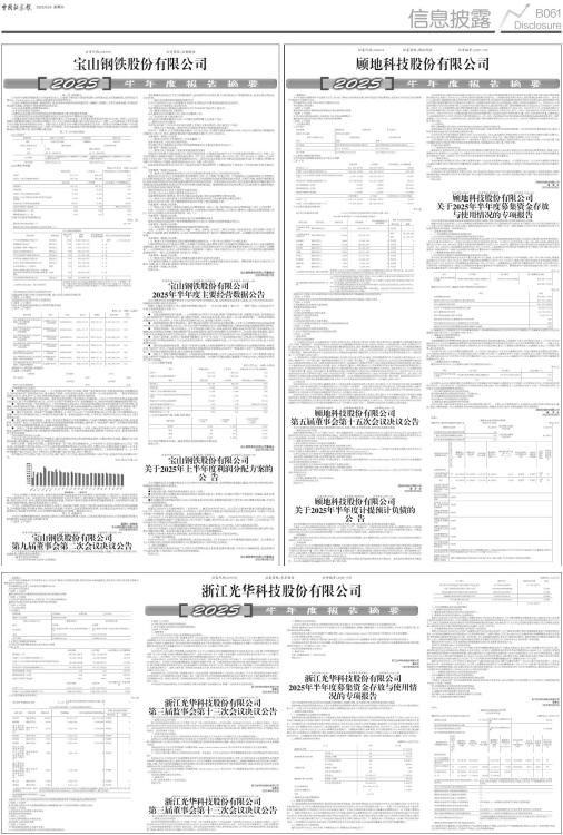 一、重要提示 本半年度报告摘要来自半年度报告全文,为全面了解本公司的经营成果、财务状况及未来发展规划,投资者应当到证监会指定媒体仔细阅读半年度报告全文。 所有董事均已出席了审议本报告的董事会会议。 非标准审计意见提示 □适用 √不适用 董事会审议的报告期利润分配预案或公积金转增股本预案 □适用 √不适用 公司计划不派发现金红利,不送红股,不以公积金转增股本。 董事会决议通过的本报告期优先股利润分配预案 □适用 √不适用 二、公司基本情况 1、公司简介 ■ 2、主要会计数据和财务指标 公司是否需追溯调整或重述以前年度会计数据 □是 √否 ■ 3、公司股东数量及持股情况 单位:股 ■ 持股5%以上股东、前10名股东及前10名无限售流通股股东参与转融通业务出借股份情况 □适用 √不适用 前10名股东及前10名无限售流通股股东因转融通出借/归还原因导致较上期发生变化 □适用 √不适用 4、控股股东或实际控制人变更情况 控股股东报告期内变更 □适用 √不适用 公司报告期控股股东未发生变更。 实际控制人报告期内变更 □适用 √不适用 公司报告期实际控制人未发生变更。 5、公司优先股股东总数及前10名优先股股东持股情况表 □适用 √不适用 公司报告期无优先股股东持股情况。 6、在半年度报告批准报出日存续的债券情况 □适用 √不适用 三、重要事项 (一)关于公司首次公开发行股票募集资金投资项目 2025年6月3日,公司召开第三届董事会第十二次会议和第三届监事会第十二次会议,审议通过了《关于部分募投项目结项并将节余募集资金永久补充流动资金的议案》。鉴于公司2022年首次公开发行股票募投项目“研发中心建设项目”已达到预定可使用状态,公司拟对“研发中心建设项目”进行结项并将节余募集资金永久补充流动资金,并注销对应募集资金专项账户,具体内容详见《关于部分募投项目结项并将节余募集资金永久补充流动资金的公告》(公告编号:2025-028)。 (二)关于新项目 2023年8月,公司与海宁市黄湾镇人民政府签订《年产15万吨粉末涂料用聚酯树脂建设项目投资协议书》,拟在海宁市黄湾镇投资实施“年产15万吨粉末涂料用聚酯树脂建设项目”,具体内容详见《关于与海宁市黄湾镇人民政府签署投资协议的公告》(公告编号:2023-041)。报告期内,“年产15万吨粉末涂料用聚酯树脂建设项目”正在有序推进中。 2025年3月5日,公司召开第三届董事会第九次会议和第三届监事会第九次会议,审议通过了《关于对外投资设立境外子公司及孙公司的议案》。公司基于未来发展战略规划,为提前布局境外产能,进一步推进和深化国际业务布局,更好地服务于全球客户的产品需求,经过前期详细的考察及多方论证,拟在新加坡和中国香港设立全资子公司,并通过新加坡子公司和香港子公司在泰国共同设立孙公司,投资建设海外工厂,最终以相关部门的备案及核准登记为准,具体内容详见《关于对外投资设立境外子公司及孙公司的公告》(公告编号:2025-003)。 2025年6月3日,公司召开第三届董事会第十二次会议和第三届监事会第十二次会议,审议通过了《关于对外投资设立境外全资子公司的议案》,公司拟使用自有资金不超过 300 万港币在中华人民共和国香港特别行政区设立全资子公司,主要开展跨境贸易并进一步拓展海外业务,最终以相关部门的备案及核准登记为准,具体内容详见《关于对外投资设立境外全资子公司的公告》(公告编号:2025-029)。 对外投资的实施进展情况,公司将根据有关规定及时履行信息披露义务,敬请广大投资者注意投资风险。 浙江光华科技股份有限公司 董事会 2025年8月28日 证券代码:001333 证券简称:光华股份 公告编号:2025-037 浙江光华科技股份有限公司 第三届监事会第十三次会议决议公告 本公司及监事会全体成员保证信息披露内容的真实、准确和完整,没有虚假记载、误导性陈述或重大遗漏。 一、监事会会议召开情况 浙江光华科技股份有限公司(以下简称“公司”)第三届监事会第十三次会议通知于2025年8月15日以专人通知方式发出。会议于2025年8月26日在公司会议室以现场表决的方式召开,会议由监事会主席姚金海先生主持。本次会议应出席监事3人,实际出席监事3人。本次会议的召开符合《中华人民共和国公司法》《中华人民共和国证券法》等法律法规、部门规章、规范性文件及《公司章程》的有关规定。会议形成如下决议: 二、监事会会议审议情况 1、会议以3票同意,0票反对,0票弃权的表决结果,审议通过《关于2025年半年度报告全文及其摘要的议案》。 监事会认为:董事会编制和审核公司《2025年半年度报告》全文及摘要的程序符合法律、行政法规的相关规定,报告内容真实、准确、完整地反映了公司的实际情况,不存在任何虚假记载、误导性陈述或者重大遗漏。因此,监事会对《2025年半年度报告》全文及摘要无异议。 具体内容详见与本公告同日披露于巨潮资讯网(http://www.cninfo.com.cn)的《2025年半年度报告》全文及其摘要。 本议案无需提交股东大会审议。 2、会议以3票同意,0票反对,0票弃权的表决结果,审议通过《关于公司2025年半年度募集资金存放与使用情况的专项报告的议案》。 监事会认为:公司2025年半年度募集资金存放与实际使用情况的专项报告内容属实、完整,公司对2025