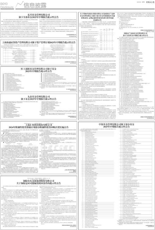 上海海通证券资产管理有限公司旗下资产管理计划2025年中期报告提示性公告