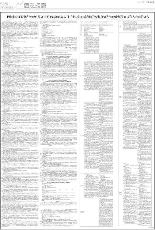 上海光大证券资产管理有限公司关于以通讯方式召开光大阳光添利债券型集合资产管理计划份额持有人大会的公告