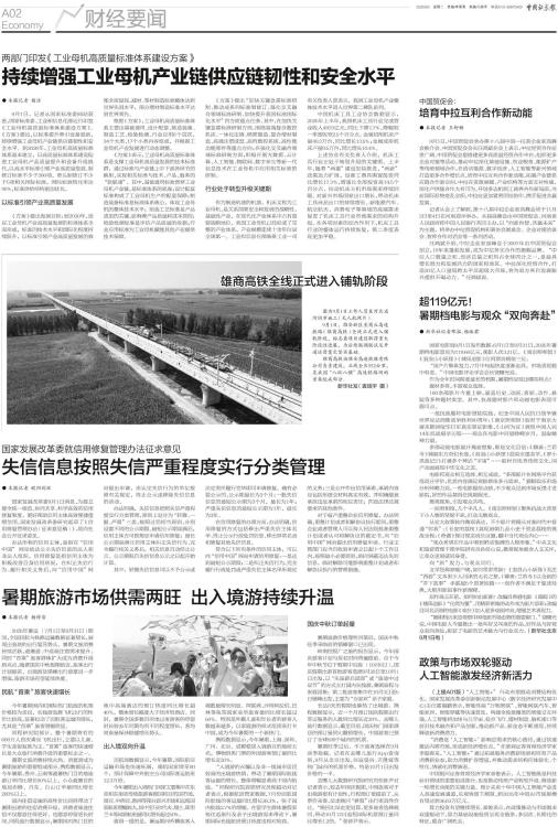 随着人工智能与消费提质等重点领域广泛深度融合,智能经济核心产业规模有望快速增长。(下转A02版)