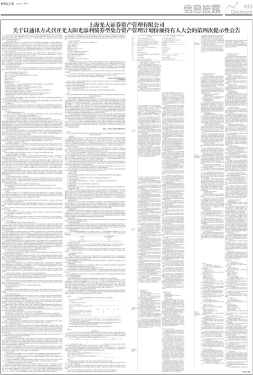 关于以通讯方式召开光大阳光添利债券型集合资产管理计划份额持有人大会的第四次提示性公告