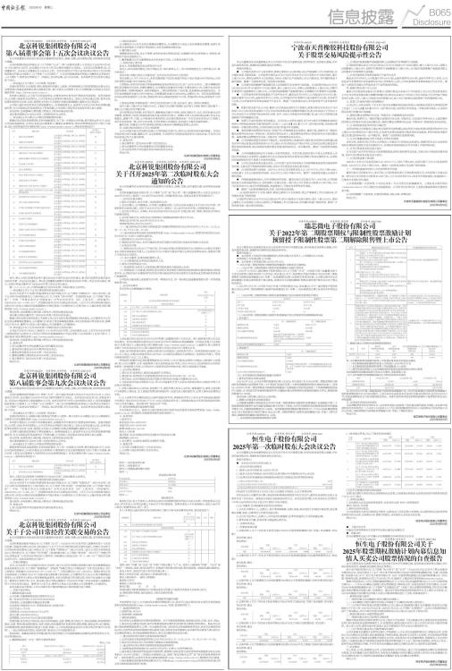 证券代码:600570 证券简称:恒生电子 公告编号:2025-062 恒生电子股份有限公司 2025年第一次临时股东大会决议公告 本公司董事会及全体董事保证本公告内容不存在任何虚假记载、误导性陈述或者重大遗漏,并对其内容的真实性、准确性和完整性承担法律责任。 重要内容提示: ● 本次会议是否有否决议案:无 一、会议召开和出席情况 (一)股东大会召开的时间:2025年9月9日 (二)股东大会召开的地点:杭州市滨江区滨兴路1888号数智恒生中心会议室 (三)出席会议的普通股股东和恢复表决权的优先股股东及其持有股份情况: ■ (四)表决方式是否符合《公司法》及《公司章程》的规定,大会主持情况等。 本次会议由公司董事会召集,采取现场和网络投票相结合的方式召开,董事长彭政纲先生线上出席并主持了本次会议。现场会议采取记名投票表决的方式。本次会议的召集、召开及表决方式均符合《中华人民共和国公司法》及公司《章程》的有关规定。 (五)公司董事、监事和董事会秘书的出席情况 1、公司在任董事11人,出席4人,其中董事韩歆毅、纪纲、朱超、陈志杰因工作原因未能出席;独立董事汪祥耀、宋艳、田素华因工作原因未能出席; 2、公司在任监事3人,出席1人,其中监事长屠海雁、监事毕铭强因工作原因未能出席; 3、董事会秘书肖敏、财务负责人姚曼英出席会议。 二、议案审议情况 (一)非累积投票议案 1、议案名称:《关于〈恒生电子股份有限公司2025年股票期权激励计划(草案)及其摘要〉的议案》 审议结果:通过 表决情况: ■ 2、议案名称:《关于〈恒生电子股份有限公司2025年股票期权激励计划实施考核管理办法〉的议案》 审议结果:通过 表决情况: ■ 3、议案名称:《关于提请股东大会授权董事会办理2025年股票期权激励计划相关事宜的议案》 审议结果:通过 表决情况: ■ 4、议案名称:《关于〈恒生电子股份有限公司2025年员工持股计划(草案)及其摘要〉的议案》 审议结果:通过 表决情况: ■ 5、议案名称:《关于〈恒生电子股份有限公司2025年员工持股计划管理办法〉的议案》 审议结果:通过 表决情况: ■ 6、议案名称:《关于提请股东大会授权董事会办理公司2025年员工持股计划相关事宜的议案》 审议结果:通过 表决情况: ■ (二)涉及重大事项,5%以下股东的表决情况 ■ (三)关于议案表决的有关情况说明 议案1至议案6为本次股东大会的特别决议议案,已经获得出席股东大会的股东所持有效表决权的三分之二以上通过。 三、律师见证情况 1、本次股东大会见证的律师事务所:北京竞天公诚(杭州)律师事务所 律师:肖佳佳、代冰倩 2、律师见证结论意见: 公司本次股东大会的召集和召开程序、出席会议人员和召集人的资格、表决程序和表决结果等相关事宜均符合法律、法规和公司《章程》的规定,本次股东大会决议合法有效。 特此公告。 恒生电子股份有限公司董事会 2025年9月10日 ● 上网公告文件 经鉴证的律师事务所主任签字并加盖公章的法律意见书 ● 报备文件 经与会董事和记录人签字确认并加盖董事会印章的股东大会决议 证券代码:600570 证券简称:恒生电子 公告编号:2025-061 恒生电子股份有限公司关于 2025年股票期权激励计划内幕信息知情人买卖公司股票情况的自查报告 本公司董事会及全体董事保证本公告内容不存在任何虚假记载、误导性陈述或者重大遗漏,并对其内容的真实性、准确性和完整性承担法律责任。 恒生电子股份有限公司(以下简称“恒生电子”或“公司”)于2025年8月21日召开了第九届董事会第四次会议,审议并通过了《关于〈恒生电子股份有限公司2025年股票期权激励计划(草案)及其摘要〉的议案》及《关于〈恒生电子股份有限公司 2025 年股票期权激励计划实施考核管理办法〉的议案》等相关议案,具体情况公司已于2025年8月23日披露于上海证券交易所网站www.sse.com.cn。 根据中国证监会《上市公司股权激励管理办法》《上市公司信息披露管理办法》《上市公司监管指引第5号一一上市公司内幕信息知情人登记管理制度》等相关法律、法规及规范性文件的要求,公司针对2025年股票期权激励计划(以下简称“本次激励计划”)采取了充分必要的保密措施,同时对本次激励计划的内幕信息知情人做了必要登记。通过向中国证券登记结算有限责任公司上海分公司查询,公司对本次激励计划内幕信息知情人买卖公司股票的情况进行了自查,具体情况如下: 一、核查的范围与程序 (一)核查对象为本次激励计划的内幕信息知情人。 (二)本次激励计划的内幕信息知情人均填报了《内幕信息知情人登记表》。 (三)公司向中国证券登记结算有限责任公司上海分公司就核查对象于本次激励计划首次公开披露前六个月内(即 2025年2月24日至 2025年8月23日,以下简称“自查期间”)买卖公司股票的情况进行了查询确认,并由中国证券登记结算有限责任公司上海分公司出具了查询证明。 二、核查对象买卖公司股票情况说明 (一)核查对象买卖公司股票的自查结果 根据中国证券登记结算有限责任公司上海分公司出具的《信息披露义务人持股及股份变更查询证明》和《股东股份变更明细清单》,在自查期间,核查对象中共有11名人员存在买卖公司股票的情形。除上述人员外,核查对象中的其他人员在自查期间不存在买卖公司股票的行为。 (二)关于核查