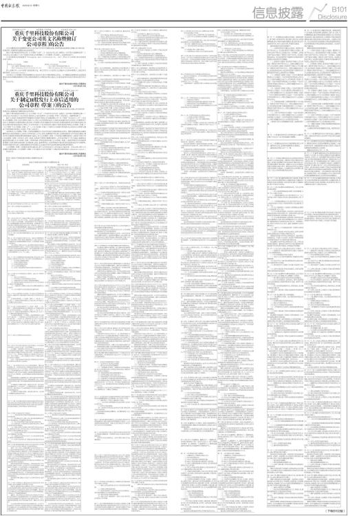 证券代码:601777 证券简称:千里科技 公告编号:2025-069 重庆千里科技股份有限公司 关于变更公司英文名称暨修订 《公司章程》的公告 本公司董事会及全体董事保证本公告内容不存在任何虚假记载、误导性陈述或者重大遗漏,并对其内容的真实性、准确性和完整性承担法律责任。 重庆千里科技股份有限公司(以下简称“公司”)于 2025年9月12日(星期五)召开第六届董事会第二十五次会议,审议通过了《关于变更公司英文名称暨修订〈公司章程〉的议案》。具体情况如下: 公司拟将英文名称变更为“Chongqing Afari Technology Co., Ltd.”,并对《公司章程》相关条款进行如下修订: ■ 除上述修订外,《公司章程》其他条款不变。修订后的《公司章程》全文随本公告同步登载于上海证券交易所网站(www.sse.com.cn)。 本次修订《公司章程》事项尚需提交公司2025年第五次临时股东会审议。公司董事会提请股东会授权经营层办理本次章程备案相关手续,授权有效期自公司股东会审议通过之日起至该等具体执行事项办理完毕之日止。 特此公告。 重庆千里科技股份有限公司董事会 2025年9月13日 证券代码:601777 证券简称:千里科技 公告编号:2025-070 重庆千里科技股份有限公司 关于制定H股发行上市后适用的 《公司章程(草案)》的公告 本公司董事会及全体董事保证本公告内容不存在任何虚假记载、误导性陈述或者重大遗漏,并对其内容的真实性、准确性和完整性承担法律责任。 重庆千里科技股份有限公司(以下简称“公司”)于2025年9月12日(星期五)召开第六届董事会第二十五次会议,审议通过了《关于制定H股发行上市后适用的〈公司章程(草案)〉的议案》。具体情况如下: 基于公司发行H股股票并在香港联合交易所有限公司主板挂牌上市(以下简称“本次发行上市”)之目的,公司根据《中华人民共和国公司法》《中华人民共和国证券法》《境内企业境外发行证券和上市管理试行办法》《香港联合交易所有限公司证券上市规则》及其他境内外有关法律、法规及规范性文件的相关规定,结合公司的实际情况及需求,制定了公司本次发行上市后适用的《重庆千里科技股份有限公司章程(草案)》(以下简称“《公司章程(草案)》”)。《公司章程(草案)》与原《公司章程》的条款对比详见本公告附件《重庆千里科技股份有限公司章程(草案)对比表》。 本次制定《公司章程(草案)》事项尚需提交公司2025年第五次临时股东会审议。董事会提请股东会授权董事会及/或其获授权人士印奇,为本次发行上市之目的,根据境内外法律、法规及规范性文件的变化情况、境内外有关政府机构和监管机构的要求与建议,对《公司章程(草案)》不时进行调整和修改(包括但不限于对《公司章程(草案)》的文字、章节、条款、生效条件等进行调整和修改),并在本次发行上市完成后,根据股本变动等事宜修订《公司章程(草案)》相应条款,并就注册资本和《公司章程(草案)》变更等事项向市场监督管理部门及其他相关政府部门办理核准、变更、备案等事宜,但该等修改不能对股东权益构成任何不利影响,并须符合境内外法律、法规及规范性文件的规定以及境内外有关政府机构和监管机构的要求。 《公司章程(草案)》经股东会审议通过后,将于公司本次发行上市完成之日起生效。在此之前,现行《公司章程》继续有效。《公司章程(草案)》全文随本公告同步登载于上海证券交易所网站(www.sse.com.cn)。 特此公告。 重庆千里科技股份有限公司董事会 2025年9月13日 附件:《重庆千里科技股份有限公司章程对比表》 附件: 重庆千里科技股份有限公司章程对比表 ■ ■ ■ ■ ■ ■ ■ ■ ■ ■