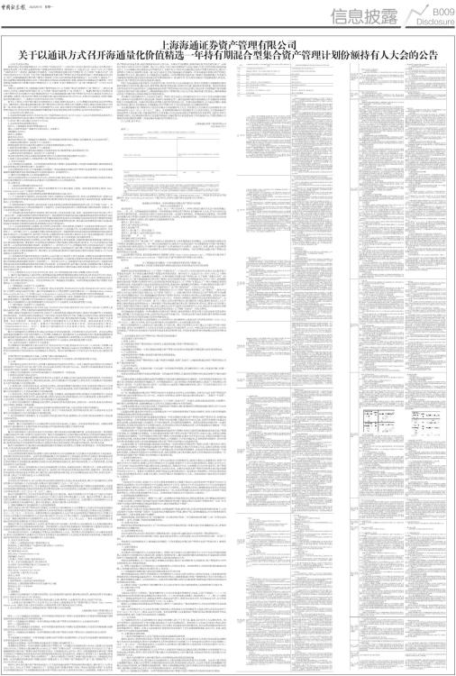 关于以通讯方式召开海通量化价值精选一年持有期混合型集合资产管理计划份额持有人大会的公告