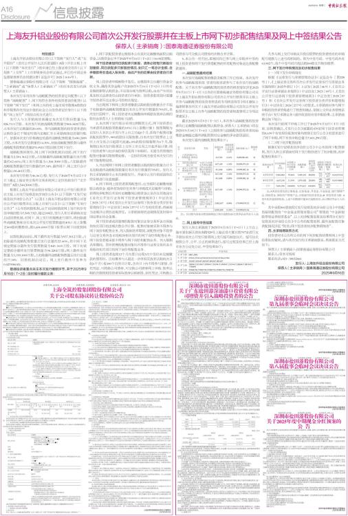 上海友升铝业股份有限公司首次公开发行股票并在主板上市网下初步配售结果及网上中签结果公告