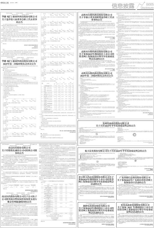 证券代码:002125 证券简称:湘潭电化 公告编号:2025-053 债券代码:127109 债券简称:电化转债 湘潭电化科技股份有限公司 关于参加2025年湖南辖区上市公司投资者网上集体接待日暨半年度业绩说明会活动的公告 本公司及董事会全体成员保证信息披露的内容真实、准确和完整,没有虚假记载、误导性陈述或重大遗漏。 为进一步加强与投资者的互动交流,湘潭电化科技股份有限公司(以下简称“公司”)将参加由湖南证监局、湖南省上市公司协会与深圳市全景网络有限公司联合举办的“资本聚三湘 楚光耀新程一一2025年湖南辖区上市公司投资者网上集体接待日暨半年度业绩说明会”活动,现将相关事项公告如下: 本次活动将采用网络远程的方式举行,投资者可登录“全景路演”网站(https://rs.p5w.net),或关注微信公众号:全景财经,或下载全景路演APP,参与本次互动交流,活动时间为2025年9月19日(星期五) 14:00-17:00。届时公司高管将在线就公司2025年半年度业绩、公司治理、发展战略、经营状况和可持续发展等投资者关心的问题,与投资者进行沟通与交流,欢迎广大投资者踊跃参与! 特此公告。 湘潭电化科技股份有限公司董事会 二〇二五年九月十五日