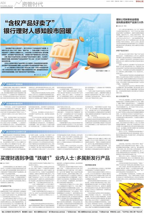 “含权理财产品比以前好卖了。我们今年加大了对权益类资产的配置,尤其是7月以来,推出了多只‘固收+’理财产品,‘+’的部分配置了不超过5%的权益类资产,主要是以公募基金为主。从收益来看,在近期债市波动、股市回暖的背景下,含权理财产品的优势凸显。”某城商行资产管理部负责人告诉记者。 近期,得益于权益市场走强,含权理财产品的市场吸引力提升。与此同时,随着债市调整,纯债类理财产品收益率有所下滑,这进一步凸显了含权理财产品的投资价值。 近年来,投资者对理财产品的风险认知不断强化、市场投资经验持续积累,含权理财产品的接受度随之提高,这也为理财公司布局权益类资产增添了动力。 下一步,多家理财公司相关负责人告诉记者,将进一步加大权益投资布局力度,加快投研团队和能力建设,调整内部激励机制;同时,聚焦服务实体经济发展和财富保值增值,为客户提供良好的产品持有体验。 ● 本报记者 石诗语 权益类资产增厚收益 近期债市调整,导致以债券为主要配置资产的固收类理财产品净值出现波动。 “债市调整主要受市场情绪影响。从趋势上看,本轮调整导致债市迎来牛熊转换的可能性不是很大。”上述城商行资产管理部负责人说,“机构投资者仍面临优质资产荒的局面,银行存款付息率持续走低,增添了银行配置利率债的动力,债市需求端仍然旺盛。此外,目前资金利率较低,基本面偏弱,这也对债市形成了较强的支撑。” 华源证券研究所固收廖志明团队也持相似观点。他们认为,短期债市或受情绪面压制,原因主要包括政策预期扰动,如基金赎回费新规等冲击市场情绪;股债“跷跷板”效应扰动,权益市场保持高位影响债市。 在近期债市调整、股市回暖的行情下,“固收+”理财产品的配置价值进一步显现。“我们通过资产配置的方式尽量平滑产品净值波动。例如,加大‘固收+’产品的发行力度。对于纯债类理财产品而言,我们更多是通过降低久期、降低杠杆等交易性手段去阶段性减小其净值波动。”上述城商行资产管理部负责人告诉记者。 “近期,得益于权益市场走强,含权理财产品的市场吸引力提升,而随着债市调整,纯固收类产品收益率有所下滑,这进一步凸显了含权理财产品的投资价值。”某股份行理财公司多元资产部相关负责人表示。 投资者风险偏好回升 “今年以来,从我们产品端的销售情况以及后台捕捉的用户画像来看,理财产品投资者对含权类产品的接受度有所提高,这也为我们布局权益类资产增添了动力。”上述股份行理财公司多元资产部相关负责人表示。 “此前,投资者对理财产品总抱有绝对收益、刚性兑付的预期,这或多或少对理财公司布局权益市场带来负担,甚至成为部分理财公司发行含权产品的枷锁。”上述城商行资产管理部负责人表示,“资管新规落地后,投资者对理财产品风险认知不断强化、市场投资经验持续积累,含权理财产品的接受度随之提高。投资者在成长,其风险偏好也在逐渐改变。” 今年以来,多家理财公司均表示加大了含权理财产品的布局力度,投研能力建设取得成效。 “从今年年初开始,我们就在有意增发含权理财产品,主要加大了固收增强类产品的发行力度,我们相对保守一点,增强的部分一般不会配置超过5%的权益仓位,尽可能避免仓位风险暴露。同时,我们也加大了对混合类理财产品的投研力度。”上述股份行理财公司多元资产部相关负责人说。 中银理财相关负责人也表示,今年以来公司资产配置结构发生明显变化,权益类资产占比稳步提升。产品类型方面,中银理财将“固收+产品”以及偏债混合类产品作为发展重点,加大了在投研方面的投入,并明确了重点研发方向。持续提升多资产多策略配置能力,形成投研一体化全链条管理体系,积极融入多层次资本市场建设。 华夏理财董事长苑志宏此前在接受中国证券报记者独家专访时表示,公司已加大权益投资布局力度,主要借助指数基金配置,积极加大权益仓位。“现在的模式与过去的‘资金池’不一样,首先理财公司要发行能投权益的产品,同时要让客户认可产品的投资策略,这些不单纯是理财公司策略选择和市场判断的问题,更重要的是渠道和客户的偏好和认可度的问题。”苑志宏说。 对于下一步的打算,苑志宏表示,将进一步聚焦服务实体经济发展和财富保值增值,围绕产品业绩比较基准达标率和超额收益,持续丰富和拓展产品投资策略,增强资产创设业务单元业绩贡献能力,为客户提供良好的产品持有体验。 加大科创类企业调研力度 随着对权益类资产的重视程度不断提高,理财公司调研上市公司的力度持续增强,尤其加大了对科创类企业的关注。 据Wind数据统计,截至9月17日,7月以来,有23家理财公司参与上市公司调研合计577次,调研上市公司数量合计561家。其中,宁银理财调研次数最多,达81次;招银理财、杭银理财、汇华理财的调研次数均超60次。 从行业角度看,电子元件、医疗保健设备、电气部件与设备、工业机械、汽车零配件与设备、区域性银行等均是理财公司调研的重点。具体来看,在电子元件方面,深南电路、奕东电子、世华科技、鼎通科技获较多理财公司调研;理财公司对这些上市公司的差异化竞争优势、目前产能情况及未来发展规划较为关注。在医疗保健设备方面,澳华内镜、安杰思、南微医学、伟思医