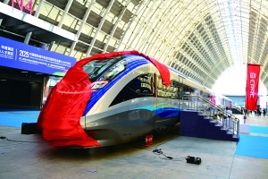 9月18日,智能市域列车在中铁青岛世界博览城亮相。 9月18日,由中国中车自主研制且拥有完全自主知识产权的首列中国标准智能市域列车暨京雄快线列车在青岛亮相。该车搭建了中国标准体系,关键核心技术全面自主化,具备时速200公里GOA4级全自动运行能力。同时,创新搭载十余项核心技术,在智能化、安全性、舒适度、节能降耗、运用经济性等方面实现全方位升级。新华社记者 李紫恒 摄