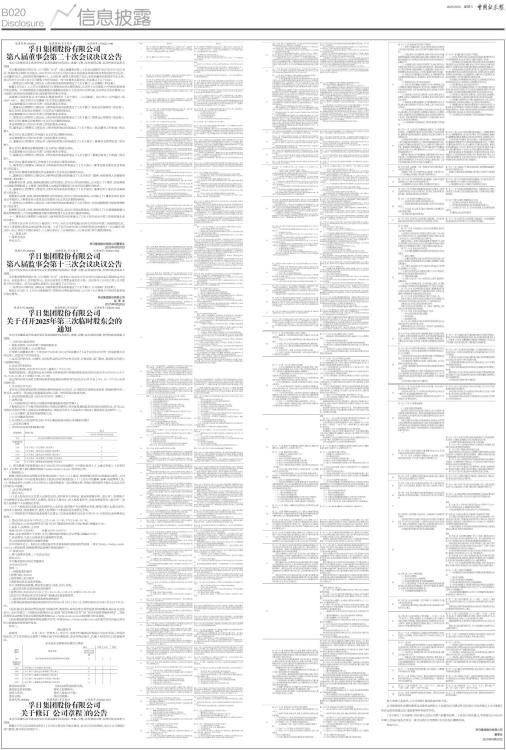 股票代码:002083 股票简称:孚日股份 公告编号:临2025-040 孚日集团股份有限公司 第八届董事会第二十次会议决议公告 本公司及董监高全体成员保证信息披露的内容真实、准确、完整,没有虚假记载、误导性陈述或重大遗漏。 孚日集团股份有限公司(以下简称“公司”)第八届董事会第二十次会议通知于2025年9月15日以书面、传真和电子邮件方式发出,2025年9月19日在公司会议室以现场表决和通讯表决相结合的方式召开。公司董事共9人,实际参加表决董事9人。公司监事、高管人员列席了会议,会议由董事长张国华先生主持。会议符合《公司法》及《公司章程》的有关规定。经与会董事认真审议,会议通过了以下决议: 一、董事会以9票同意,0票反对,0票弃权的表决结果通过了《关于修订〈公司章程〉的议案》。 根据《公司法》、《上市公司章程指引》等相关法律法规的规定,公司对《公司章程》中的相关条款进行相应修改。公司提请股东会授权董事会或董事会授权人士负责向公司登记机关办理公司本次修改《公司章程》所涉及的变更登记及/或备案等所有相关手续。 具体修订内容详见公司刊登在巨潮资讯网的《关于修订〈公司章程〉的公告》(公告编号:临2025-041)。修订后的《公司章程》全文详见巨潮资讯网。 本议案需提交公司2025年第三次临时股东会审议。 二、董事会以9票赞同、0票反对、0票弃权的表决结果通过了《关于修订〈股东会议事规则〉的议案》。 修订后的《股东会议事规则》全文详见巨潮资讯网站。 本议案需提交公司2025年第三次临时股东会审议。 三、董事会以9票赞同、0票反对、0票弃权的表决结果通过了《关于修订〈董事会议事规则〉的议案》。 修订后的《董事会议事规则》全文详见巨潮资讯网站。 本议案需提交公司2025年第三次临时股东会审议。 四、董事会以9票赞同、0票反对、0票弃权的表决结果通过了《关于修订〈独立董事工作制度〉的议案》。 修订后的《独立董事工作制度》全文详见巨潮资讯网站。 本议案需提交公司2025年第三次临时股东会审议。 五、董事会以9票赞同、0票反对、0票弃权的表决结果通过了《关于修订〈募集资金管理制度〉的议案》。 修订后的《募集资金管理制度》全文详见巨潮资讯网站。 本议案需提交公司2025年第三次临时股东会审议。 六、董事会以9票赞同、0票反对、0票弃权的表决结果通过了《关于修订〈董事会秘书工作制度〉的议案》。 修订后的《董事会秘书工作制度》全文详见巨潮资讯网站。 七、董事会以9票赞同、0票反对、0票弃权的表决结果通过了《关于修订〈董事会提名委员会议事规则〉的议案》。 修订后的《董事会提名委员会议事规则》全文详见巨潮资讯网站。 八、董事会以9票赞同、0票反对、0票弃权的表决结果通过了《关于制定〈董事、高级管理人员离职管理制度〉的议案》。 根据相关法律、法规、规章和规范性文件的规定,结合公司的实际情况,公司拟订了《董事、高级管理人员离职管理制度》,《董事、高级管理人员离职管理制度》全文详见巨潮资讯网站。 九、董事会以9票赞同、0票反对、0票弃权的表决结果通过了《关于制定〈董事会审计委员会议事规则〉的议案》。 根据相关法律、法规、规章和规范性文件的规定,结合公司的实际情况,公司拟订了《董事会审计委员会议事规则》,《董事会审计委员会议事规则》全文详见巨潮资讯网站。 十、董事会以9票赞同、0票反对、0票弃权的表决结果通过了《关于制定〈信息披露暂缓与豁免管理制度〉的议案》。 根据相关法律、法规、规章和规范性文件的规定,结合公司的实际情况,公司拟订了《信息披露暂缓与豁免管理制度》,《信息披露暂缓与豁免管理制度》全文详见巨潮资讯网站。 十一、董事会以9票赞同、0票反对、0票弃权的表决结果通过了《关于召开2025年第三次临时股东会的议案》。 公司将于2025年10月10日(星期五)下午2:30在公司多功能厅召开公司2025年第三次临时股东会,审议上述需提交股东会审议的相关议案。《关于召开2025年第三次临时股东会的通知》(公告编号:临2025-042)详见《中国证券报》、《上海证券报》、《证券时报》、《证券日报》和巨潮资讯网站。 十二、备查文件 1、董事会决议 特此公告。 孚日集团股份有限公司董事会 2025年9月20日 股票代码:002083 股票简称:孚日股份 公告编号:临2025-043 孚日集团股份有限公司 第八届监事会第十三次会议决议公告 本公司及监事会全体成员保证信息披露的内容真实、准确、完整,没有虚假记载、误导性陈述或重大遗漏。 孚日集团股份有限公司(以下简称“公司”)监事会于2025年9月19日在公司会议室以现场表决方式召开。应到监事3人,实到监事3人,会议由监事会主席管金连先生主持。会议符合《公司法》及《公司章程》的有关规定。经与会监事认真审议,会议通过了以下决议: 一、监事会以3票同意,0票反对,0票弃权的表决结果通过了《关于修订〈公司章程〉的议案》。 根据《公司法》《上市公司章程指引》等相关法律法规的规定,公司对《公司章程》中的相关条款进行相应修改。 孚日集团股份有限公司 监 事 会 2025年9月20日 股票代码:002083 股票简称:孚日股份 公告编号:临2025-042 孚日集团股份有限公司 关于召开2025年第三次临时股东会的