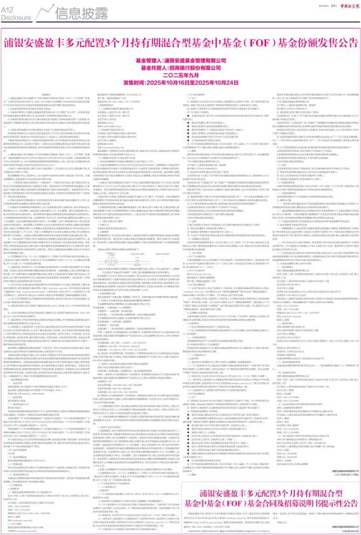浦银安盛盈丰多元配置3个月持有期混合型基金中基金(FOF)基金份额发售公告
