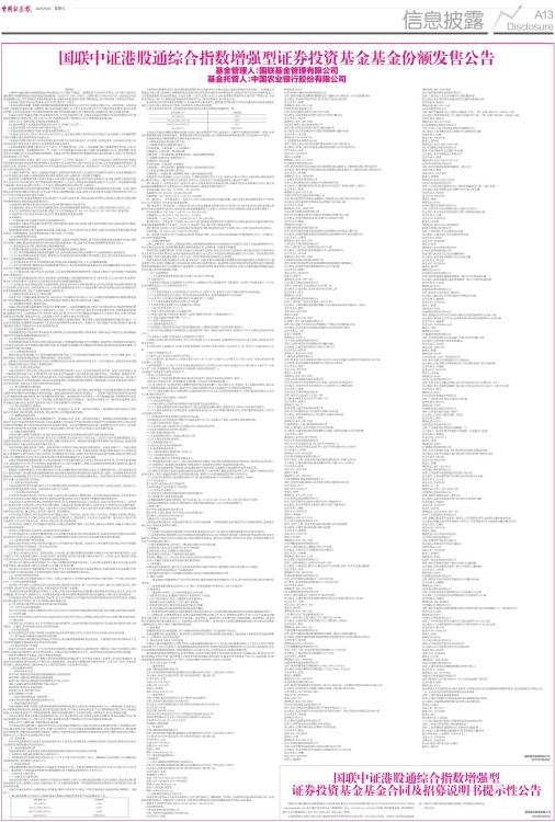 国联中证港股通综合指数增强型证券投资基金基金份额发售公告