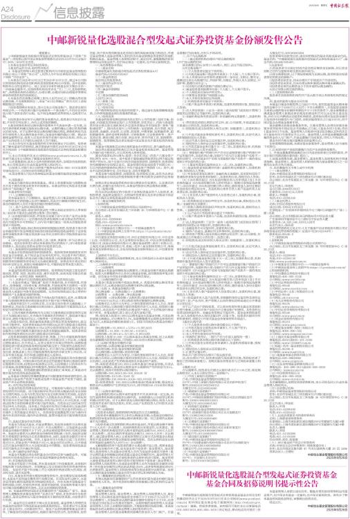 中邮新锐量化选股混合型发起式证券投资基金份额发售公告