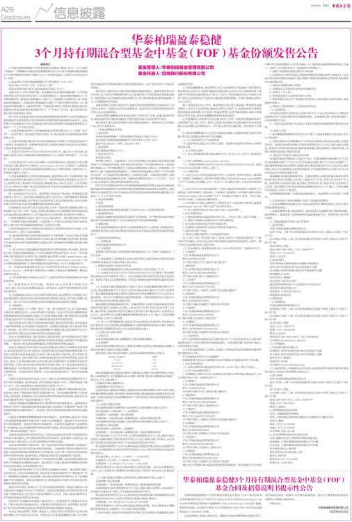 华泰柏瑞盈泰稳健3个月持有期混合型基金中基金(FOF)