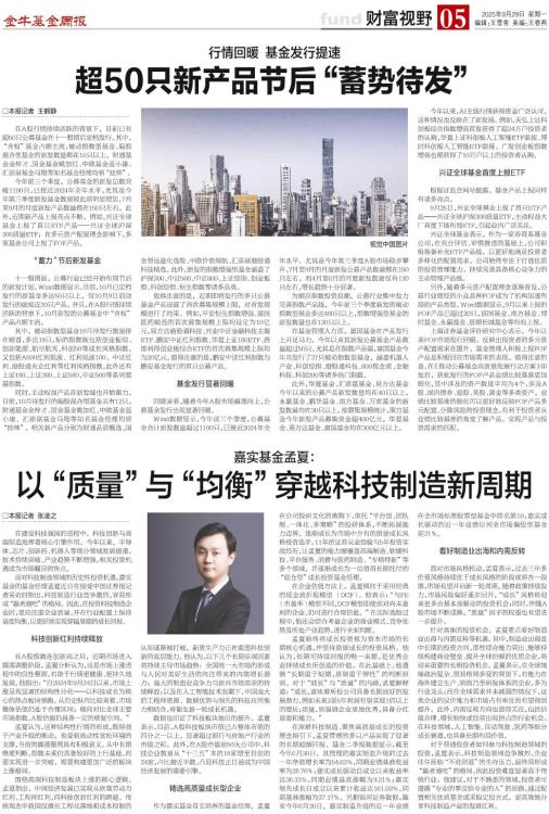 □本报记者 王鹤静 在A股行情持续活跃的背景下,目前已有超50只公募基金在十一假期后定档发行。其中,“含权”基金占据主流,被动指数型基金、偏股混合型基金的新发数量都在10只以上,财通基金金梓才、国金基金姚加红、中欧基金蓝小康、汇添富基金马翔等知名基金经理均将“挂帅”。 今年前三个季度,公募基金的新发总数突破1100只,已接近2024年全年水平,尤其是今年第三季度新发基金数量较此前明显增加,7月至9月的月度新发产品数量都在150只左右。此外,近期新产品上报亮点不断。例如,兴证全球基金上报了首只ETF产品——兴证全球沪深300质量ETF;在多元资产配置理念影响下,多家基金公司上报了FOF产品。 “蓄力”节后新发基金 十一假期前,公募行业已经开始布局节后的新发计划。Wind数据显示,目前,10月已定档发行的新基金多达50只以上,仅10月9日启动发行的就接近20只产品。并且,在A股行情持续活跃的背景下,10月新发的公募基金中“含权”产品占据主流。 其中,被动指数型基金10月待发行数量排在榜首,多达19只,标的指数既包括创业板综、创新能源、航空航天、科创50等成长风格指数,又包括A500红利低波、红利低波100、中证红利、港股通央企红利等红利风格指数,此外还有上证180、上证380、上证580、中证500等系列宽基指数。 同时,主动权益产品在新发端也开始蓄力。目前,10月待发行的偏股混合型基金共有12只,财通基金金梓才、国金基金姚加红、中欧基金蓝小康、汇添富基金马翔等知名基金经理均将“挂帅”,相关新产品分别为财通品质甄选、国金智远量化选股、中欧价值领航、汇添富港股通科技精选。此外,新发的指数增强型基金涵盖了沪深300、中证500、中证800、上证综指、创业板指、科创综指、恒生指数等诸多品类。 值得注意的是,近期即将发行的多只公募基金产品设置了首次募集规模上限,对首发规模进行了约束。例如,平安恒生指数增强、富国医药精选的首次募集规模上限均设定为10亿元,易方达港股通科技、兴业中证金融科技主题ETF、鹏安中证红利指数、华夏上证180ETF、西部利得创业板综合ETF的首次募集规模上限均为20亿元。值得注意的是,鹏安中证红利指数为鹏安基金发行的首只公募产品。 基金发行显著回暖 回顾来看,随着今年A股市场震荡向上,公募基金发行出现显著回暖。 Wind数据显示,今年前三个季度,公募基金合计新发数量超过1100只,已接近2024年全年水平。尤其是今年第三季度A股市场稳步攀升,7月至9月的月度新发公募产品数量都在150只左右,而4月至6月的月度新发数量仅有120只左右,增长趋势十分显著。 为顺应指数投资浪潮,公募行业集中发力完善指数产品线,今年前三个季度新发的被动指数型基金多达480只以上,指数增强型基金的新发数量也在130只以上。 在基金管理人方面,富国基金在产品发行上开足马力,今年以来其新发公募基金产品数量超过50只。尤其是在指数产品端,富国基金今年共发行了37只被动指数型基金,涵盖机器人产业、科创综指、港股通科技、800现金流、金融科技、科创200等诸多热门指数。 此外,华夏基金、汇添富基金、易方达基金今年以来的公募产品新发数量均在40只以上,永赢基金、鹏华基金、南方基金、万家基金的新发数量均在30只以上。按募集规模统计,南方基金今年新发产品募集资金超400亿元,华夏基金、易方达基金、富国基金均在300亿元以上。 今年以来,AI主线行情获得资金广泛认可,这种情况也反映在了新发端。例如,天弘上证科创板综合指数增强首发获得了超24万户投资者的认购,华夏上证科创板人工智能ETF联接、博时科创板人工智能ETF联接、广发创业板指数增强也都获得了10万户以上的投资者认购。 兴证全球基金首度上报ETF 根据证监会网站披露,基金产品上报同样有诸多亮点。 9月25日,兴证全球基金上报了首只ETF产品——兴证全球沪深300质量ETF,主动权益大厂首度下场布局ETF,引起业内广泛关注。 兴证全球基金表示,作为一家券商系基金公司,在充分评估、审慎推进的基础上,公司积极筹备补充ETF产品线,以更好地满足投资者多样化的配置需求。公司始终专注于打造优质的投资管理能力,持续完善具备核心竞争力的主动管理产品线。 另外,随着多元资产配置理念逐渐普及,公募行业曾经的小众品种FOF成为了机构加速布局的产品类型。Wind数据显示,9月以来上报的FOF产品已超过20只,富国基金、南方基金、博时基金、永赢基金、景顺长城基金等均有上报。 上海证券基金评价研究中心表示,今年以来FOF市场发行回暖,反映出投资者的多元资产配置需求在提升,基金管理人积极上报FOF产品是积极回应市场需求的表现。值得注意的是,在《推动公募基金高质量发展行动方案》印发后,获批发行的FOF产品业绩比较基准更加细化,其中涉及的资产数量平均为4个,涉及A股、国内债券、港股、美股、黄金等多类资产。业绩比较基准的细化可以更好地反映FOF产品多元配置、分散风险的投资理念,有利于投资者从业绩比较基准的角度了解产品,实现产品与投资需求的匹配。