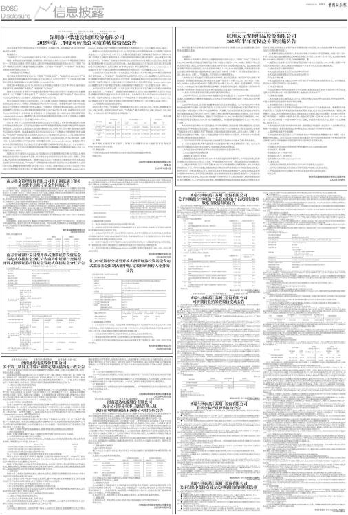 证券代码:688166 x 证券简称:博瑞医药 公告编号:2025-082 博瑞生物医药(苏州)股份有限公司 关于回购股份事项前十名股东和前十名无限售条件股东持股情况的公告 本公司董事会及全体董事保证本公告内容不存在任何虚假记载、误导性陈述或者重大遗漏,并对其内容的真实性、准确性和完整性依法承担法律责任。 博瑞生物医药(苏州)股份有限公司(以下简称“公司”)于2025年9月26日召开第四届董事会第十二次会议,审议通过了《关于以集中竞价交易方式回购股份的议案》。具体内容详见公司2025年9月27日披露于上海证券交易所网站(www.sse.com.cn)的《关于以集中竞价交易方式回购股份的预案》(公告编号:2025-078)。 根据《上海证券交易所上市公司自律监管指引第7号一一回购股份》等相关规定,现将董事会公告回购股份决议的前一个交易日(即2025年9月26日)登记在册的前十名股东和前十名无限售条件股东的名称、持股数量和持股比例情况公告如下: 一、公司前十名股东持股情况 ■ 二、公司前十名无限售条件股东持股情况 ■ 特此公告。 博瑞生物医药(苏州)股份有限公司董事会 2025年10月10日 证券代码:688166 证券简称:博瑞医药 公告编号:2025-084 转债代码:118004 转债简称:博瑞转债 博瑞生物医药(苏州)股份有限公司 可转债转股结果暨股份变动公告 本公司董事会及全体董事保证本公告内容不存在任何虚假记载、误导性陈述或者重大遗漏,并对其内容的真实性、准确性和完整性依法承担法律责任。 重要内容提示: ● 转股情况:“博瑞转债”自2022年7月11日起开始进入转股期。2025年7月1日至2025年9月30日期间,“博瑞转债”共有人民币11,613,000元已转换为公司股票,转股数量为334,229股,占“博瑞转债”转股前公司已发行股份总额的0.0815%。截至2025年9月30日,“博瑞转债”共有人民币22,180,000元已转换为公司股票,转股数量为637,507股,占“博瑞转债”转股前公司已发行股份总额的0.1555%。 ● 未转股可转债情况:截至2025年9月30日,“博瑞转债”尚未转股的可转债金额为442,814,000元,占“博瑞转债”发行总量的95.2288%。 一、可转债发行上市概况 经中国证券监督管理委员会证监许可[2021]3551号文同意注册,博瑞生物医药(苏州)股份有限公司(以下简称“公司”)于2022年1月4日向不特定对象发行465万张可转换公司债券,每张面值为人民币100元,发行总额46,500.00万元。本次发行的可转换公司债券的期限为自发行之日起六年,即2022年1月4日至2028年1月3日。 经上海证券交易所自律监管决定书[2022]22号文同意,公司46,500.00万元可转换公司债券于2022年1月27日起在上海证券交易所挂牌交易,债券简称“博瑞转债”,债券代码“118004”。 根据有关规定和《博瑞生物医药(苏州)股份有限公司向不特定对象发行可转换公司债券募集说明书》(以下简称“可转债募集说明书”)的约定,公司发行的“博瑞转债”自2022年7月11日起可转换为公司股份,转股期间为2022年7月11日至2028年1月3日,初始转股价格为35.68元/股。 因公司实施2021年年度权益分派,“博瑞转债”的转股价格自2022年6月16日起由35.68元/股调整为35.56元/股,具体内容详见公司2022年6月9日披露于上海证券交易所网站的《关于2021年年度权益分派调整可转债转股价格的公告》(公告编号2022-044)。 因公司以简易程序向特定对象发行人民币普通股(A股)12,464,966股,“博瑞转债”的转股价格自2022年12月6日起由35.56元/股调整为35.05元/股,具体内容详见公司2022年12月3日披露于上海证券交易所网站的《关于“博瑞转债”转股价格调整的公告》(公告编号2022-101)。 因公司可转债募投项目产品种类发生变更,“博瑞转债”附加回售条款生效。本次“博瑞转债”回售申报期内,回售的有效申报数量为60张,回售金额为6,013.80元(含利息)。具体内容详见公司2023年6月2日披露于上海证券交易所网站的《关于“博瑞转债”回售结果的公告》(公告编号2023-048)。 因公司实施2022年年度权益分派,“博瑞转债”的转股价格自2023年6月15日起由35.05元/股调整为34.94元/股,具体内容详见公司2023年6月8日披露于上海证券交易所网站的《关于2022年年度权益分派调整可转债转股价格的公告》(公告编号2023-053)。 因公司实施2023年年度权益分派,“博瑞转债”的转股价格自2024年7月4日起由34.94元/股调整为34.84元/股,具体内容详见公司2024年6月26日披露于上海证券交易所网站的《关于2023年年度权益分派调整可转债转股价格的公告》(公告编号2024-054)。 因公司实施2024年年度权益分派,“博瑞转债”的转股价格自2025年6月23日起由34.84元/股调整为34.74元/股,具体内容详见公司2025年6月13日披露于上海证券交易所网站的《关于2024年年度权益分派调整可转债转股价格的公告》(公告编号2025-035)。 二、可转债本次转股情况 2025年7月1日至2025年9月30日期间,“博瑞转债”共有人民币11,613,000元已转换为公司股票,转股数量为334,229股,占“博瑞转债”转股前公司已发行股份总额的0.0815%。截至2025年9月30日,“博瑞转债”共有人民币22,180,000元已转换为公司股票,转股数量为637,507股,占“博瑞转债”转股前公司已发行股份总额的0.1555%。 截至2025年9月30日,“博瑞转债”尚未转股的可转债金额为442,814,000元,占“博瑞转债”发行总量的95.2288%。 三、股本变动情况 单位:股 ■ 四、其他 联系部门:证券部 联系电话:0512-62620988 联系