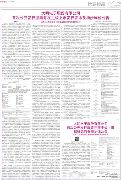 首次公开发行股票并在主板上市发行安排及初步询价公告