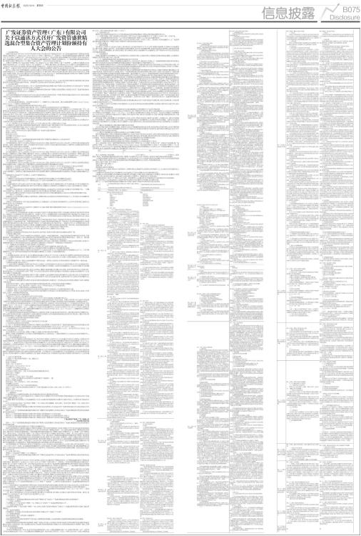 一、会议基本情况 根据中国证监会于2018年11月28日发布的《证券公司大集合资产管理业务适用〈关于规范金融机构资产管理业务的指导意见〉操作指引》(证监会公告〔2018〕39号,以下简称“《操作指引》”)的规定,广发资管盛世精选混合型集合资产管理计划(以下简称“本集合计划”)经中国证监会2021年《关于准予广发金管家抗通胀通缩集合资产管理计划合同变更的回函》(机构部函[2021]4238号)准予,由广发金管家抗通胀通缩集合资产管理计划变更而来。《广发资管盛世精选混合型集合资产管理计划资产管理合同》(以下简称“《集合合同》”)自2023年3月20日起生效。 本集合计划管理人为广发证券资产管理(广东)有限公司(以下简称“管理人”或“广发资管”),本集合计划托管人为交通银行股份有限公司(以下简称“托管人”或“交通银行”)。根据《操作指引》及《集合合同》对本集合计划存续期限的约定“本集合计划自本集合合同变更生效日起存续期不得超过3年。本集合计划自集合合同生效日起3年后,按照中国证监会有关规定执行”,本集合计划将于2026年3月19日到期(如本集合计划展期的,到期日以届时发布的公告为准)。 鉴于以上情况,综合考虑份额持有人需求及本集合计划的长远发展,为充分保护份额持有人利益,根据《中华人民共和国证券投资基金法》《公开募集证券投资基金运作管理办法》《操作指引》等法律法规的规定和《集合合同》的有关约定,管理人经与托管人协商一致,决定以通讯方式召开份额持有人大会,审议《关于广发资管盛世精选混合型集合资产管理计划变更管理人并变更注册为广发盛世精选混合型证券投资基金有关事项的议案》。 会议的具体安排如下: 1、会议召开方式:通讯方式。 2、投票表决起止时间:自2025年10月20日起,至2025年12月5日15:00止(以本公告列明的纸质表决票的寄达地点收到表决票时间或投票系统记录时间为准。各项投票方式的起止时间有所差异,具体详见下文)。 二、会议审议事项 本次持有人大会拟审议的事项为《关于广发资管盛世精选混合型集合资产管理计划变更管理人并变更注册为广发盛世精选混合型证券投资基金有关事项的议案》,详见附件一。 上述议案的内容说明见《关于广发资管盛世精选混合型集合资产管理计划变更管理人并变更注册为广发盛世精选混合型证券投资基金有关事项的说明》,详见附件二。 三、权益登记日 本次大会的权益登记日为2025年10月16日,该日在本集合计划登记机构(中国证券登记结算有限责任公司)登记在册的本集合计划全体份额持有人均有权参加本次份额持有人大会的表决。 四、投票 (一)纸质投票方式 1、本次会议接受纸质投票,表决票样式见附件三。份额持有人可通过剪报、复印或登陆管理人网站(https://www.gfam.com.cn/)下载等方式获取表决票。 2、份额持有人应当按照表决票的要求填写相关内容,其中: (1)个人投资者自行投票的,需在表决票上签字,并提供本人的有效身份证件正反面复印件; (2)机构投资者自行投票的,需在表决票上加盖本单位公章或经授权的业务公章(或管理人认可的其他印章,下同),并提供加盖公章的营业执照复印件(事业单位、社会团体或其他单位可使用加盖公章的事业单位法人登记证书、有权部门的批文、开户证明或登记证书复印件等);合格境外机构投资者自行投票的,需在表决票上加盖本机构公章(如有)或由授权代表在表决票上签字(如无公章),并提供该授权代表的有效身份证件正反面复印件、该合格境外机构投资者所签署的授权委托书或者证明该授权代表有权代表该合格境外机构投资者签署表决票的其他证明文件,以及该合格境外机构投资者的营业执照、商业登记证或者其他有效注册登记证明复印件和取得合格境外机构投资者资格的证明文件的复印件; (3)份额持有人可根据本公告“五、授权”章节的规定授权本集合计划的管理人、销售机构以及其他符合法律规定的个人或机构代其在本次份额持有人大会上投票; (4)以上各项及公告全文中的公章、批文、开户证明、登记证书等,以管理人的认可为准。 3、份额持有人或其代理人需将填妥的表决票原件(否则视为无效)和所需相关文件于前述投票时间内(以本公告规定的收件人收到表决票的时间为准)通过专人送交、邮寄方式送达至以下大会收件人处: 收件人:广发证券资产管理(广东)有限公司 地址:广东省广州市天河区珠江新城马场路26号广发证券大厦32楼前台 联系人:梁丹丹 联系电话:95575 电子邮件:95575@gf.com.cn 邮政编码:510627 请在信封表面注明:“广发资管盛世精选混合型集合资产管理计划份额持有人大会表决专用” (二)短信投票(仅适用于个人持有人) 为方便份额持有人参与大会投票,自2025年10月20日09:30起,至2025年12月5日15:00以前(以管理人指定系统记录时间为准),管理人和销售机构(如需)可向预留手机号码的个人持有人发送征集投票意见短信,份额持有人根据征集投票意见短信的提示以回复短信即可直接投票。 短信投票方式仅适用于个人持有人,不适用于机构持有人。 (三)电话投票(仅适用于个人持有人) 为方便份额持有人参与大会投票,自2025年10月20日09:30起,至2025年12月5日15:00以前(以管理人指定系统记录时间为准),份额持有人可拨打管理人客服电话(95575),并按提示转人工坐席参