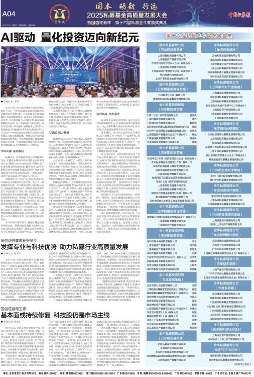 ● 本报记者 魏昭宇 10月15日,国信证券首席经济学家、经济研究所所长荀玉根在“固本 砺新 行远——2025私募基金高质量发展大会暨国信证券杯·第十六届私募金牛奖颁奖典礼”上表示,借鉴过往的历史经验,在“反内卷”等更多宏观政策落地的背景下,当前经济基本面的点状改善有望逐渐扩散到更多行业。从估值和市场情绪等方面分析,相关指标仍比较温和,市场未来上涨空间可期。 荀玉根表示,维持科技股的市场主线判断。“2024年9月以来,在人工智能(AI)浪潮的引领下,多个行业打开了增量空间,科技股成为本轮行情的主线。2012年到2015年,科技股受益于移动互联网浪潮,基本面率先回升,计算机板块归母净利润增速从2013年一季度的3%升至2016年一季度的175%。2019年到2021年之间,电子板块净利润增速自2019年一季度的-13%回升至2020年三季度的28%;电力设备板块净利润增速自2020年一季度的-14%快速升至2022年四季度的80%。当市场进入快速上涨阶段,领涨板块往往是当时主导产业的应用领域,如2015年上半年的‘互联网+’,2021年的新能源车。”荀玉根表示,着眼未来一年,仍看好科技主线,特别是AI应用端。 荀玉根还表示,价值板块的投资价值亦不可忽视。“2025年4月份以来,行业轮动逐渐降速,科技主线凝聚市场资金共识且涨幅已较为显著,借鉴过往历史经验,价值板块或存在补涨机会。”荀玉根表示,可关注以下三个领域。 首先是地产板块。荀玉根认为,该板块经历近几年的调整,目前整体估值较低。政策端来看,预计会有更多稳地产政策持续发力,低估的地产股具备修复潜力。其次是券商板块。荀玉根表示,随着市场行情回暖,成交明显放量,券商净利润同比回升明显。随着市场情绪进一步回升,市场成交额或进一步放大,券商利润有望进一步提升。此外,券商的营收有望受益于金融创新业务拓宽。第三是消费板块。“以白酒为例,白酒指数连跌5年,股息率回到高位,性价比凸显。叠加股市行情回暖带动的居民财富效应,或推动消费板块上行。”荀玉根表示。
