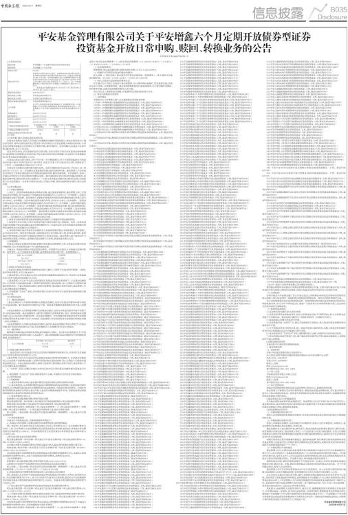 平安基金管理有限公司关于平安增鑫六个月定期开放债券型证券
