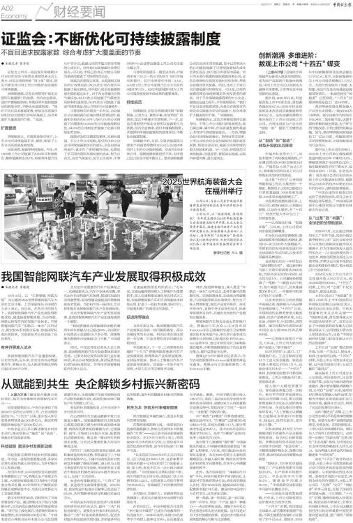 ● 本报记者 昝秀丽 证监会上市司一级巡视员毕晓颖10月16日在2025可持续全球领导者大会上表示,证监会将按照新“国九条”要求,坚定不移支持引导上市公司做好高质量的可持续披露。 毕晓颖透露,证监会将指导沪深北交易所以披露指引为依据,结合企业需求,适时丰富编制指南,并做好明年强制披露后的政策评估,不断优化披露制度。“我们不盲目追求披露家数,而是会在政策评估和企业实践能力评估的基础上,综合考虑扩大覆盖面的节奏。”她说。 扩面提质 毕晓颖表示,在政策持续引导下,上市公司可持续披露扩面、提质,彰显了上市公司高质量发展成效。 具体来看,披露率持续提高。今年,共1869家上市公司披露了2024年可持续报告,整体披露率达34.7%,较前两年提升约10个百分点;披露公司的市值占到全市场的七成左右,另外有612家披露社会责任报告,可以说,市场已经有近半数公司较为系统地披露了可持续相关信息。 披露内容更翔实客观。从披露相关报告的公司情况看,99.3%的公司在报告中披露了量化指标,其中超八成企业披露的量化指标超过25个。对于各方普遍关注的气候信息,62.1%的公司披露了气候相关风险和机遇类型,65.9%的公司披露了温室气体排放量,较上年的57.5%显著提升。 可持续相关治理进一步夯实。企业逐步从后端披露向前端治理和管理延伸。披露相关报告的公司中,有67.3%的公司搭建了治理架构;63.9%的公司披露战略信息,44.0%的公司制定并披露了定量可持续相关目标。 披露涉及的议题更加聚焦,实质性更强。不少上市公司反映,指引的出台让企业可持续披露更加有的放矢,企业由原来的迷茫,逐步有了更明确的目标,也降低了学习国内国际其他标准的成本。指引出台后,应对气候变化、反不正当竞争、平等对待中小企业等议题受上市公司关注度大幅上升。 可持续评级提升。截至去年底,沪深两市有三分之一的公司MSCI ESG评级有所提升,其中全球领先评级(AAA、AA级)的上市公司家数占比由五年前的0提升至7.2%。ESG评级的提升成为上市公司高质量发展丰硕成果的重要体现。 持续规范 毕晓颖说,证监会将继续按照“积极借鉴、以我为主、兼收并蓄、彰显特色”的原则,坚定不移逐步完善制度。下一步,证监会将指导沪深北交易所以披露指引为依据,结合企业需求,适时丰富编制指南,并做好明年强制披露后的政策评估,不断优化披露制度。 毕晓颖介绍,目前,交易所披露指引要求个别重要指数样本公司以及境内外同时上市的公司强制披露,涉及约400多家公司。强制披露家数虽然不多,但市值已经占到全市场半数以上。要求强制披露公司自2026年首次披露,其中已经有95%的公司提前披露了可持续发展报告或社会责任报告,执行指引有很好的基础。对于尚未进行披露的强制披露范围公司,证监会将督促交易所加强针对性指导,帮助企业做好首次披露。同时,还有上千家公司自愿披露可持续报告。可以说,目前的披露范围总体能够满足各类投资者的需求。对于不在强制披露范围的中小企业,鼓励企业量力而行,不作强制要求。“我们不盲目追求披露家数,而是会在政策评估和企业实践能力评估的基础上,综合考虑扩大覆盖面的节奏。”毕晓颖说。 毕晓颖表示,证监会将继续坚持实践导向,引导上市公司践行新发展理念,助力碳达峰、碳中和,在高质量发展的基础上书写好可持续发展报告。一方面,增强企业可持续发展意识,指导证券交易所、上市公司协会对企业加强培训,提供更多案例,帮助企业识别、披露可持续领域的重大风险和机遇。另一方面,持续规范可持续披露,加强监管,督促如实披露,实现内容更均衡、重点更突出。