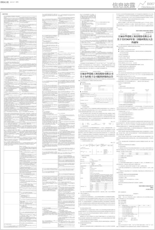 ■ ■ ■ ■ ■ 本次章程修订涉及部分措辞修改,如“上市公司”改为“公司”、“本公司章程”改为“本章程”等不影响原条款含义的,不再进行逐条列示。因增加或删除条款导致《公司章程》条款序号发生变化的,修订后的《公司章程》将进行相应调整。如有相互引用条款的,其条款序号亦相应变化。除上述修订外,《公司章程》的其他条款不变。 证券代码:603356 证券简称:华菱精工 公告编号:2025-033 宣城市华菱精工科技股份有限公司 关于为控股子公司提供担保的公告 本公司董事会及全体董事保证本公告内容不存在任何虚假记载、误导性陈述或者重大遗漏,并对其内容的真实性、准确性和完整性承担法律责任。 重要内容提示: ● 担保对象及基本情况 ■ ● 累计担保情况 ■ 一、担保情况概述 (一)担保的基本情况 为满足公司控股子公司生产经营的需要,根据其业务需求及授信计划,公司控股子公司江苏三斯拟向银行申请最高额不超过人民币2,000万元的综合授信,公司拟为上述子公司在授信额度范围内提供不超过人民币2,000万元的担保。 江苏三斯申请的综合授信,品种包括但不限于短期流动资金贷款、长期借款、并购贷款、银行承兑汇票、商业承兑汇票、保函、信用证、抵押贷款等。在前述担保最高额度内,公司为子公司提供担保,担保期限为相关授信业务全部结项为止、担保范围包括实际发生的授信额度本金及相关利息。具体以公司办理的实际业务及与银行签署的相关协议为准。本次子公司申请银行授信额度及公司提供担保额度明细如下: 单位:万元 ■ (二)内部决策程序 公司于2025年10月15日召开第四届董事会第三十二次会议、第四届监事会第二十七次会议,审议通过了《关于新增为控股子公司提供担保的议案》。董事会提请股东大会在核定担保额度及有效期内,授权公司及子公司法定代表人或法定代表人授权的人员,全权办理担保事宜,包括但不限于签署协议文本及办理与担保有关的其他手续。在上述担保总额范围内,公司将根据实际经营情况,单次或逐笔签订具体担保协议。超过上述总额度的其他担保,按照相关规定由董事会或者股东大会另行审议后实施。授权期限自本次担保事项经股东大会审议通过之日至2025年年度股东大会会议召开之日止。 本议案尚需提交公司股东大会审议。 (三)担保预计基本情况(如有) 单位:万元 ■ 二、被担保人基本情况 (一)基本情况 ■ 江苏三斯不存在影响偿债能力的重大或有事项(包括担保、抵押、诉讼与仲裁事项等),不属于失信被执行人。 三、担保协议的主要内容 公司目前尚未签订具体担保协议,上述计划拟担保金额仅为公司拟提供的担保额度。董事会提请股东大会在核定担保额度及有效期内,授权公司及子公司法定代表人或法定代表人授权的人员,全权办理担保事宜,包括但不限于签署协议文本及办理与担保有关的其他手续。在上述担保总额范围内,公司将根据实际经营情况,单次或逐笔签订具体担保协议。超过上述总额度的其他担保,按照相关规定由董事会或者股东大会另行审议后实施。授权期限自本次担保事项经股东大会审议通过之日至2025年年度股东大会会议召开之日止。 四、担保的必要性和合理性 本次新增为控股子公司提供担保系为了满足子公司日常经营和业务发展资金需要,相关担保的实施有利于子公司经营业务的开展,促进其各项经营计划的顺利实施,符合公司长远利益,不会对公司的正常运作和业务发展造成不利影响。本次担保符合《公司章程》及《对外担保制度》等相关规定。 被担保方江苏三斯为公司控股子公司,其资产负债率不超过70%,生产经营均正常,业务也在持续拓展中,整体风险可控,具有债务偿付能力。江苏三斯其他少数股东因资产规模小及简化银行贷款程序要求未提供同比例担保。 公司将全面加强对江苏三斯的生产经营指导、管理,努力提高其盈利能力,加强财务管理,有效地防范和控制担保风险。 五、董事会意见 董事会认为,本次拟新增为控股子公司提供担保符合公司及子公司正常生产经营的需要,符合公司实际经营情况和整体发展战略,有利于提高被担保方的融资效率,符合公司及子公司整体的利益。公司对江苏三斯的经营情况能够进行有效管理,及时掌握其资信情况、履约能力,上述担保风险可控,不会对公司的正常经营和业务发展造成不利影响,不存在损害公司及股东利益的情形。董事会同意将该事项提交股东大会审议。 六、累计对外担保数量及逾期担保的数量 截至本公告披露日,公司及下属子公司对外担保总额为3.48亿元(不含本次),均为公司对全资及控股子公司的担保,占公司最近一期经审计净资产的64.68%。公司对下属子公司提供的担保余额为1.81亿元,占公司最近一期经审计净资产的40.22%无逾期对外担保情况。 特此公告。 宣城市华菱精工科技股份有限公司董事会 2025年10月17日 证券代码:603356 证券简称:华菱精工 公告编号:2025-034 宣城市华菱精工科技股份有限公司 关于召开2025年第三次临时股东大会的通知 本公司董事会及全体董事保证本公告内容不存在任何虚假记载、误导性陈述或者重大遗漏,并对其内容的真实性、准确性和完整性承担法律责任。 重要内容提示: ● 股东大会召开日期:2025年11月3日 ● 本次股东大会采用的网络投票系统:上海证券交易