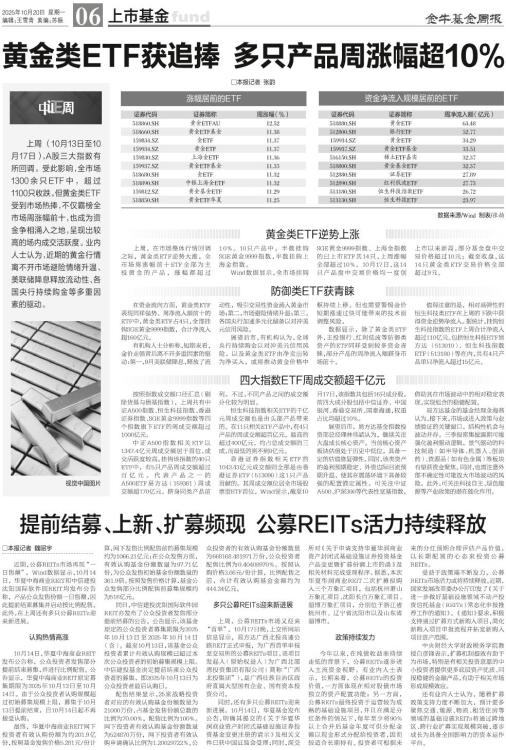 黄金类ETF获追捧 多只产品周涨幅超10%