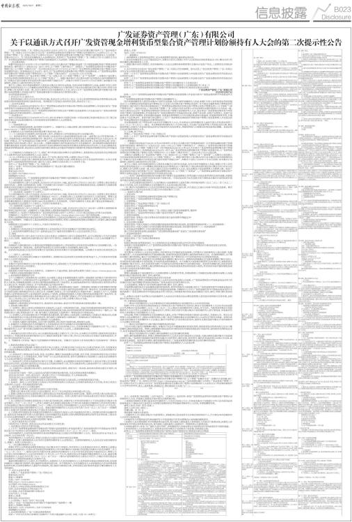 关于以通讯方式召开广发资管现金增利货币型集合资产管理计划份额持有人大会的第二次提示性公告
