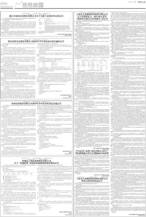 烟台双塔食品股份有限公司2025年半年度权益分派实施的公告
