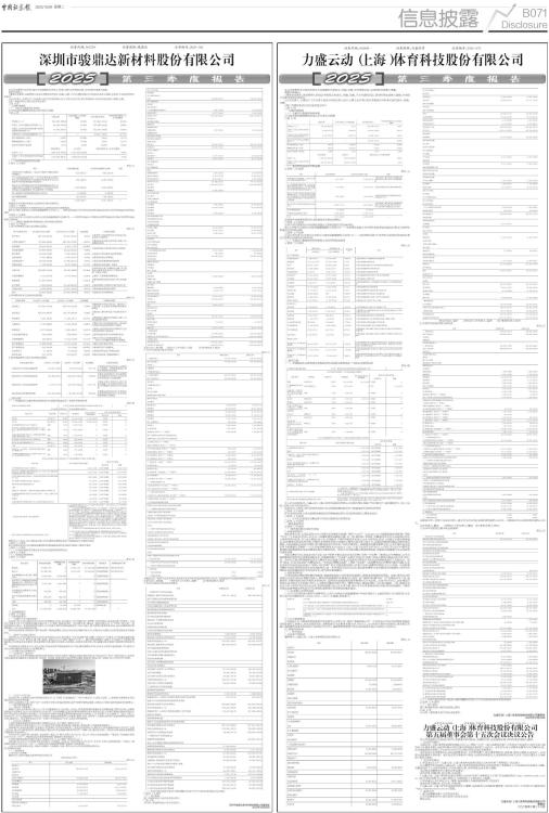 证券代码:301538 证券简称:骏鼎达 公告编号:2025-041 本公司及董事会全体成员保证信息披露的内容真实、准确、完整,没有虚假记载、误导性陈述或重大遗漏。 重要内容提示: 1.董事会及董事、高级管理人员保证季度报告的真实、准确、完整,不存在虚假记载、误导性陈述或重大遗漏,并承担个别和连带的法律责任。 2.公司负责人、主管会计工作负责人及会计机构负责人(会计主管人员)声明:保证季度报告中财务信息的真实、准确、完整。 3.第三季度财务会计报告是否经过审计 □是 √否 一、主要财务数据 (一) 主要会计数据和财务指标 公司是否需追溯调整或重述以前年度会计数据 □是 √否 ■ (二) 非经常性损益项目和金额 √适用 □不适用 单位:元 ■ 其他符合非经常性损益定义的损益项目的具体情况: □适用 √不适用 公司不存在其他符合非经常性损益定义的损益项目的具体情况。 将《公开发行证券的公司信息披露解释性公告第1号一一非经常性损益》中列举的非经常性损益项目界定为经常性损益项目的情况说明 □适用 √不适用 公司不存在将《公开发行证券的公司信息披露解释性公告第1号一一非经常性损益》中列举的非经常性损益项目界定为经常性损益的项目的情形。 (三) 主要会计数据和财务指标发生变动的情况及原因 √适用 □不适用 1、资产负债表项目重大变动情况及原因 单位:元 ■ 2、利润表项目重大变动情况及原因 单位:元 ■ 3、现金流量表项目重大变动情况及原因 单位:元 ■ 二、股东信息 (一) 普通股股东总数和表决权恢复的优先股股东数量及前十名股东持股情况表 单位:股 ■ 持股5%以上股东、前10名股东及前10名无限售流通股股东参与转融通业务出借股份情况 □适用 √不适用 前10名股东及前10名无限售流通股股东因转融通出借/归还原因导致较上期发生变化 □适用 √不适用 (二) 公司优先股股东总数及前10名优先股股东持股情况表 □适用 √不适用 (三) 限售股份变动情况 √适用 □不适用 单位:股 ■ 三、其他重要事项 √适用 □不适用 一、对外投资事项? (一)对境外子公司追加投资? 2025年7月,公司以通讯表决方式召开总经理办公会议,审议通过“关于对捷卡富(墨西哥)股份有限公司追加投资”的事项。公司及公司通过全资子公司骏鼎达国际有限公司(以下简称“骏鼎达国际”)拟向捷卡富(墨西哥)股份有限公司(以下简称“捷卡富”)增加投资400万美元。本次增加投资完成后,公司向捷卡富的总投资金额将达1,000万美元,捷卡富的注册资本将由50,000.00墨西哥比索增加至18,792,000.00墨西哥比索。 本次追加投资系为满足捷卡富日常运营、市场拓展需求,契合公司全球化战略布局方向,对推动公司国际化业务持续发展具有重要意义。 (二)境外子公司设立筹划? 2025年9月,公司以通讯表决方式召开总经理办公会议,审议通过“关于设立捷卡富(越南)有限公司”的事项,公司拟通过骏鼎达国际在越南设立子公司(暂定名:捷卡富(越南)有限公司,以下简称“越南子公司”)。截至本报告披露日,越南子公司尚处于注册登记筹备阶段,尚未完成当地主管部门的注册登记手续;最终公司名称、注册地址、注册资本等信息,将以越南当地主管部门核准登记的结果为准。 本次筹划设立越南子公司,是公司基于东南亚地区市场发展潜力与产业机遇的战略性布局,符合公司全球化发展战略,可以提升公司在全球市场的综合竞争力与品牌影响力。 二、公司重大节点庆典活动? (一)东莞项目厂房封顶? 2025年8月,由东莞市骏鼎达新材料科技有限公司负责实施的“骏鼎达功能性保护材料生产建设项目”举行厂房封顶仪式,本次封顶标志着该项目建设进入收尾阶段,为后续厂房装修、设备安装与调试等坚实基础,根据项目规划,该厂房预计将于2026年年中投用。 ■ (二)山东子公司开业? 2025年9月,山东骏鼎达新材料科技有限公司(以下简称“山东骏鼎达”)举行开业仪式,正式投入运营。山东骏鼎达将聚焦华北区域及周边市场的业务拓展。 本次山东骏鼎达开业,有利于进一步完善公司国内区域业务网络,提升区域市场响应速度,对推动公司国内业务发展具有积极意义。 三、工商变更及备案事项 (一)母公司工商备案? 根据《中华人民共和国公司法》《上市公司章程指引》《关于新〈公司法〉配套制度规则实施相关过渡期安排》等有关法律、法规和规范性文件的规定,结合公司实际情况,公司完成三会结构调整,监事会的职权由董事会审计委员会行使,《深圳市骏鼎达新材料股份有限公司监事会议事规则》相应废止,公司同时对《深圳市骏鼎达新材料股份有限公司章程》(以下简称“《公司章程》”)进行了修订,2025年9月,公司完成前述修订后的《公司章程》备案及高级管理人员备案(董事、监事、经理等),并取得深圳市市场监督管理局出具的《登记通知书》。前述事项完成后可进一步提升公司规范运作水平,完善公司治理结构。 (二)分公司工商变更? 1、深圳市骏鼎达新材料股份有限公司重庆分公司(以下简称“重庆分公司”) 近期完成两项工商变更登记工作,并已取得当地市场监督管理部门换发的《营业执照》,具体变更情况如下: 2025年8月,完成地址变更(住所地址、经营场所、驻在地址等变更),变更后经营地址为:重庆市江北区港城中路38号的2号厂房第二层半层、第三层