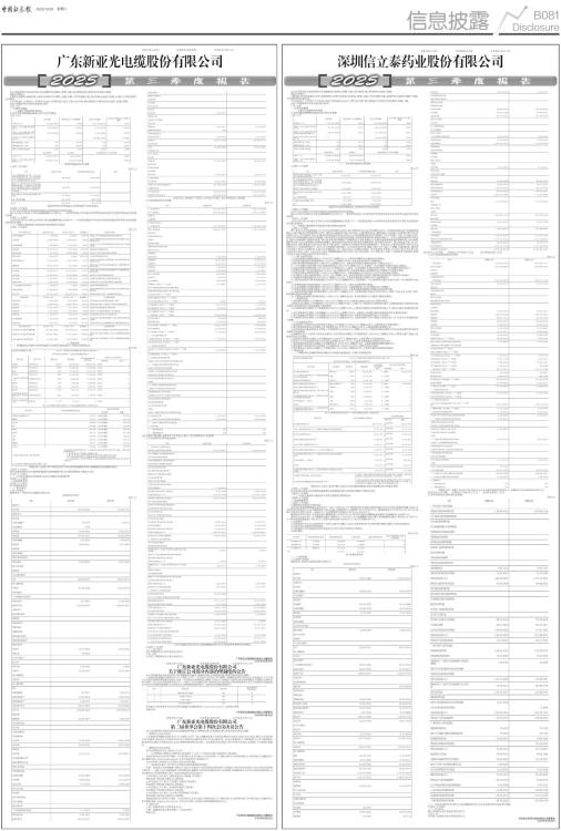 证券代码:001382 证券简称:新亚电缆 公告编号:2025-041 本公司及董事会全体成员保证信息披露的内容真实、准确、完整,没有虚假记载、误导性陈述或重大遗漏。 重要内容提示: 1.董事会及董事、高级管理人员保证季度报告的真实、准确、完整,不存在虚假记载、误导性陈述或重大遗漏,并承担个别和连带的法律责任。 2.公司负责人、主管会计工作负责人及会计机构负责人(会计主管人员)声明:保证季度报告中财务信息的真实、准确、完整。 3.第三季度财务会计报告是否经过审计 □是 √否 一、主要财务数据 (一) 主要会计数据和财务指标 公司是否需追溯调整或重述以前年度会计数据 □是 √否 ■ (二) 非经常性损益项目和金额 √适用 □不适用 单位:元 ■ 其他符合非经常性损益定义的损益项目的具体情况: □适用 √不适用 公司不存在其他符合非经常性损益定义的损益项目的具体情况。 将《公开发行证券的公司信息披露解释性公告第1号一一非经常性损益》中列举的非经常性损益项目界定为经常性损益项目的情况说明 □适用 √不适用 公司不存在将《公开发行证券的公司信息披露解释性公告第1号一一非经常性损益》中列举的非经常性损益项目界定为经常性损益的项目的情形。 (三) 主要会计数据和财务指标发生变动的情况及原因 √适用 □不适用 单位:元 ■ 二、股东信息 (一) 普通股股东总数和表决权恢复的优先股股东数量及前十名股东持股情况表 单位:股 ■ 持股5%以上股东、前10名股东及前10名无限售流通股股东参与转融通业务出借股份情况 □适用 √不适用 前10名股东及前10名无限售流通股股东因转融通出借/归还原因导致较上期发生变化 □适用 √不适用 (二) 公司优先股股东总数及前10名优先股股东持股情况表 □适用 √不适用 三、其他重要事项 □适用 √不适用 四、季度财务报表 (一) 财务报表 1、资产负债表 编制单位:广东新亚光电缆股份有限公司 2025年09月30日 单位:元 ■ ■ 法定代表人:陈志辉 主管会计工作负责人:胡元 会计机构负责人:阮雪娇 2、年初到报告期末利润表 单位:元 ■ 法定代表人:陈志辉 主管会计工作负责人:胡元 会计机构负责人:阮雪娇 3、年初到报告期末现金流量表 单位:元 ■ (二) 2025年起首次执行新会计准则调整首次执行当年年初财务报表相关项目情况 □适用 √不适用 (三) 审计报告 第三季度财务会计报告是否经过审计 □是 √否 公司第三季度财务会计报告未经审计。 广东新亚光电缆股份有限公司董事会 2025年10月28日 证券代码:001382 证券简称:新亚电缆 公告编号:2025-042 广东新亚光电缆股份有限公司 关于修订公司部分内部治理制度的公告 本公司及董事会全体成员保证信息披露的内容真实、准确和完整,没有虚假记载、误导性陈述或重大遗漏。 广东新亚光电缆股份有限公司(以下简称“公司”)于2025年10月24日召开的第二届董事会第十四次会议,审议通过了《关于修订公司部分内部治理制度的议案》,为进一步完善公司治理制度,根据《公司法》《证券法》《深圳证券交易所股票上市规则》《深圳证券交易所上市公司自律监管指引第1号一一主板上市公司规范运作》等法律法规、规范性文件的相关要求以及《公司章程》的最新规定,结合公司实际经营需要,公司对部分公司治理制度进行修订。具体修订的制度情况如下: ■ 本次修订后的制度全文详见公司同日披露于巨潮资讯网(www.cninfo.com.cn)上的相关内容。 特此公告。 广东新亚光电缆股份有限公司董事会 2025年10月28日 证券代码:001382 证券简称:新亚电缆 公告编号:2025-040 广东新亚光电缆股份有限公司 第二届董事会第十四次会议决议公告 本公司及董事会全体成员保证信息披露的内容真实、准确和完整,没有虚假记载、误导性陈述或重大遗漏。 一、董事会会议召开情况 广东新亚光电缆股份有限公司(以下简称“公司”)第二届董事会第十四次会议通知于2025年10月13日以电话、微信方式送达给公司7名董事,本次会议于2025年10月24日以现场结合通讯方式在公司会议室召开。会议应到董事7人,实到董事7人,其中董事陈志辉、陈伟杰以通讯方式参加会议,会议由董事长陈家锦先生主持。本次董事会会议的召开符合国家有关法律、法规和《公司章程》的规定。 二、董事会会议审议情况 经与会董事认真审议,形成以下决议: (一)以7票同意、0票反对、0票弃权,审议通过了《关于〈公司2025年第三季度报告〉的议案》。 具体内容详见公司同日刊登在《证券时报》《证券日报》《中国证券报》《上海证券报》《经济参考报》《中国日报》《金融时报》和巨潮资讯网(www.cninfo.com.cn)上的《2025年第三季度报告》。 《2025年第三季度报告》已经审计委员会审议通过。 (二)逐项审议通过《关于修订公司部分内部治理制度的议案》 为进一步完善公司治理制度,根据《公司法》《证券法》《深圳证券交易所股票上市规则》《深圳证券交易所上市公司自律监管指引第1号一一主板上市公司规范运作》等法律法规、规范性文件的相关要求以及《公司章程》的最新规定,结合公司实际经营需要,公司对部分公司治理制度进行修订,相关议案逐项表决结果如下: 1、审议通过《关于修订〈董事会秘书工作制度〉的议案》 表决结果:7票同意,0票反对,0票弃权。 2、审议通过《关于修订