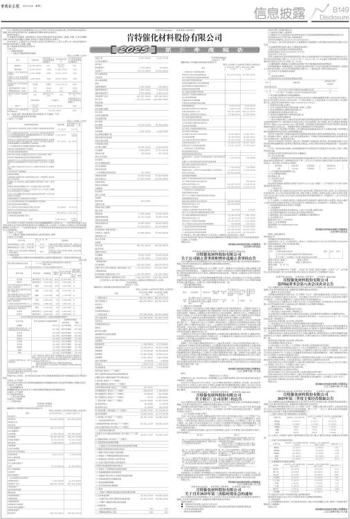 本公司董事会及全体董事保证本公告内容不存在任何虚假记载、误导性陈述或者重大遗漏,并对其内容的真实性、准确性和完整性承担法律责任。 重要内容提示: 公司董事会及董事、高级管理人员保证季度报告内容的真实、准确、完整,不存在虚假记载、误导性陈述或重大遗漏,并承担个别和连带的法律责任。 公司负责人、主管会计工作负责人及会计机构负责人(会计主管人员)保证季度报告中财务信息的真实、准确、完整。 第三季度财务报表是否经审计 □是√否 一、主要财务数据 (一)主要会计数据和财务指标 单位:元币种:人民币 ■ 注:“本报告期”指本季度初至本季度末3个月期间,下同。 (二)非经常性损益项目和金额 √适用 □不适用 单位:元币种:人民币 ■ 对公司将《公开发行证券的公司信息披露解释性公告第1号一一非经常性损益》未列举的项目认定为非经常性损益项目且金额重大的,以及将《公开发行证券的公司信息披露解释性公告第1号一一非经常性损益》中列举的非经常性损益项目界定为经常性损益的项目,应说明原因。 □适用 √不适用 (三)主要会计数据、财务指标发生变动的情况、原因 √适用 □不适用 ■ 二、股东信息 (一)普通股股东总数和表决权恢复的优先股股东数量及前十名股东持股情况表 单位:股 ■ 持股5%以上股东、前10名股东及前10名无限售流通股股东参与转融通业务出借股份情况 □适用 √不适用 前10名股东及前10名无限售流通股股东因转融通出借/归还原因导致较上期发生变化 □适用√不适用 三、其他提醒事项 需提醒投资者关注的关于公司报告期经营情况的其他重要信息 □适用 √不适用 四、季度财务报表 (一)审计意见类型 □适用√不适用 (二)财务报表 合并资产负债表 2025年9月30日 编制单位:肯特催化材料股份有限公司 单位:元币种:人民币审计类型:未经审计 ■ ■ 公司负责人:项飞勇主管会计工作负责人:杨涛会计机构负责人:罗炜 合并利润表 2025年1一9月 编制单位:肯特催化材料股份有限公司 单位:元币种:人民币审计类型:未经审计 ■ 合并现金流量表 2025年1一9月 编制单位:肯特催化材料股份有限公司 单位:元币种:人民币审计类型:未经审计 ■ 公司负责人:项飞勇主管会计工作负责人:杨涛会计机构负责人:罗炜 2025年起首次执行新会计准则或准则解释等涉及调整首次执行当年年初的财务报表 □适用 √不适用 特此公告。 肯特催化材料股份有限公司董事会 2025年10月28日 证券代码:603120证券简称:肯特催化公告编号:2025-032 肯特催化材料股份有限公司 关于公司独立董事辞职暨补选独立董事的公告 本公司董事会及全体董事保证本公告内容不存在任何虚假记载、误导性陈述或者重大遗漏,并对其内容的真实性、准确性和完整性承担法律责任。 重要内容提示: 肯特催化材料股份有限公司(以下简称“公司”)董事会于近日收到公司独立董事王建国先生的书面辞职报告。王建国先生因个人原因,申请辞去公司第四届董事会独立董事职务,同时辞去提名委员会主任委员、战略委员会委员职务。辞职后,王建国先生将不再担任公司任何职务。 2025年10月26日,公司召开第四届董事会第八次会议,审议通过《关于补选公司第四届董事会独立董事的议案》,董事会同意提名罗雄军先生(简历详见附件)为公司第四届董事会独立董事候选人,任期与公司第四届董事会任期一致。 一、独立董事离任情况 (一)提前离任的基本情况 ■ (二)离任对公司的影响 公司董事会于近日收到公司独立董事王建国先生的书面辞职报告。王建国先生因个人原因,申请辞去公司第四届董事会独立董事职务,同时辞去提名委员会主任委员、战略委员会委员职务。辞职后,王建国先生将不再担任公司任何职务。截至本公告日,王建国先生未持有公司股份,亦不存在应当履行而未履行的承诺事项,且确认与公司董事会无任何意见分歧,也无任何与辞职有关的事项需提请公司董事会及股东与债权人注意的情况。 根据《公司法》《上海证券交易所股票上市规则》《上海证券交易所上市公司自律监管指引第1号一一规范运作》及《公司章程》等相关规定,王建国先生的辞职将会导致公司独立董事人数少于董事会成员的三分之一,王建国先生的辞职将在公司选举产生新任独立董事后生效。在此之前,王建国先生仍将按照有关法律法规和《公司章程》的规定继续履行公司独立董事、董事会提名委员会主任委员、董事会战略委员会委员职责。公司将按照规定程序尽快完成独立董事的补选工作。 王建国先生在担任公司独立董事期间,认真履行独立董事职责,恪尽职守、勤勉尽责,在促进公司规范运作等方面发挥了积极作用。公司董事会对王建国先生在任职期间为公司及董事会工作所做出的贡献表示衷心的感谢。 二、选举独立董事情况 根据《上市公司独立董事管理办法》《上海证券交易所上市公司自律监管指引第1号一一规范运作》等相关法律法规的规定,公司董事会提名委员会对独立董事候选人任职资格审查后,公司于2025年10月26日召开第四届董事会第八次会议,审议通过了《关于补选公司第四届董事会独立董事的议案》,董事会同意提名罗雄军先生(简历详见附件)为公司第四届董事会独立董事候选人,任期与公司第四届董事会任期一致。罗雄军先生已取得上海