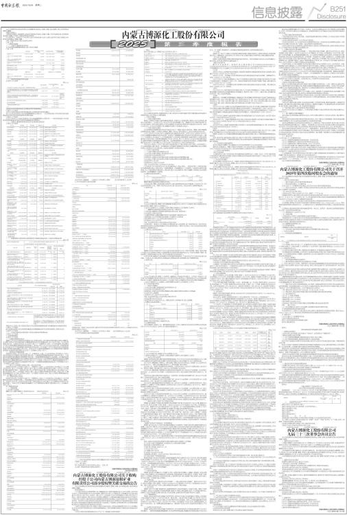 本公司及董事会全体成员保证信息披露的内容真实、准确、完整,没有虚假记载、误导性陈述或重大遗漏。 重要内容提示: 1.董事会及董事、高级管理人员保证季度报告的真实、准确、完整,不存在虚假记载、误导性陈述或重大遗漏,并承担个别和连带的法律责任。 2.公司负责人、主管会计工作负责人及会计机构负责人(会计主管人员)声明:保证季度报告中财务信息的真实、准确、完整。 3.第三季度财务会计报告是否经过审计 □是 √否 一、主要财务数据 (一) 主要会计数据和财务指标 公司是否需追溯调整或重述以前年度会计数据 □是 √否 ■ (二) 非经常性损益项目和金额 √适用 □不适用 单位:元 ■ 其他符合非经常性损益定义的损益项目的具体情况: □适用 √不适用 公司不存在其他符合非经常性损益定义的损益项目的具体情况。 将《公开发行证券的公司信息披露解释性公告第1号一一非经常性损益》中列举的非经常性损益项目界定为经常性损益项目的情况说明 □适用 √不适用 公司不存在将《公开发行证券的公司信息披露解释性公告第1号一一非经常性损益》中列举的非经常性损益项目界定为经常性损益的项目的情形。 (三) 主要会计数据和财务指标发生变动的情况及原因 √适用 □不适用 ■ 二、股东信息 (一) 普通股股东总数和表决权恢复的优先股股东数量及前十名股东持股情况表 单位:股 ■ 持股5%以上股东、前10名股东及前10名无限售流通股股东参与转融通业务出借股份情况 □适用 √不适用 前10名股东及前10名无限售流通股股东因转融通出借/归还原因导致较上期发生变化 □适用 √不适用 (二) 公司优先股股东总数及前10名优先股股东持股情况表 □适用 √不适用 三、其他重要事项 √适用 □不适用 (一)回购注销限制性股票 根据公司《2023年限制性股票激励计划》的相关规定,部分激励对象因离职或岗位调整等,公司需对其所持有的全部或部分未解锁限制性股票进行回购注销,合计190.75万股,占公司总股本的0.0513%。2025年9月29日,公司召开九届三十一次董事会、九届二十五次监事会,审议通过了《关于回购注销部分限制性股票的议案》。2025年10月17日,公司召开2025年第三次临时股东会,审议通过《关于回购注销部分限制性股票的议案》,同日披露了《关于回购注销部分限制性股票减少注册资本通知债权人的公告》。详见公司于巨潮资讯网披露的《关于回购注销部分限制性股票减少注册资本通知债权人的公告》(公告编号:2025-076)。 (二)限制性股票解除限售 2025年9月29日,公司召开九届三十一次董事会、九届二十五次监事会,审议通过了《关于2023年限制性股票激励计划预留授予部分第一个解除限售期解除限售条件成就的议案》。公司2023年限制性股票激励计划预留授予部分第一个限售期解除限售条件已经成就,公司董事会按规定为符合解除限售条件的35名激励对象所持有的355.80万股可解除限售的限制性股票办理解除限售事宜,解除限售的股份于2025年10月17日上市流通。详见公司于巨潮资讯网披露的《关于2023年限制性股票激励计划预留授予部分第一个解除限售期解除限售股份上市流通的公告》(公告编号:2025-074)。 (三)修订《公司章程》及制定、修订、废止相关制度 2025年9月29日,公司召开九届三十一次董事会、九届二十五次监事会,审议通过了《关于减少注册资本、修订〈公司章程〉及制定、修订、废止公司部分管理制度的议案》,公司对《公司章程》相关条款进行修订。2025年10月17日,公司召开2025年第三次临时股东会,审议通过《关于减少注册资本、修订〈公司章程〉及制定、修订、废止公司部分管理制度的议案》。详见公司于巨潮资讯网披露的《关于减少注册资本、修订〈公司章程〉及制定、修订、废止公司部分管理制度的公告》(公告编号:2025-066)。 (四)续聘年度审计机构 2025年9月29日,公司召开九届三十一次董事会、九届二十五次监事会,审议通过了《关于续聘2025年度审计机构的议案》,同意续聘立信会计师事务所为公司2025年度审计机构,聘期一年。2025年10月17日,公司召开2025年第三次临时股东会,审议通过《关于续聘2025年度审计机构的议案》。详见公司于巨潮资讯网披露的《关于续聘2025年度审计机构的公告》(公告编号:2025-069)。 四、季度财务报表 (一) 财务报表 1、合并资产负债表 编制单位:内蒙古博源化工股份有限公司 2025年09月30日单位:元 ■■ 法定代表人:戴继锋 主管会计工作负责人:李君 会计机构负责人:马玉莹 2、合并年初到报告期末利润表 单位:元 ■ 本期发生同一控制下企业合并的,被合并方在合并前实现的净利润为:0.00元,上期被合并方实现的净利润为:0.00元。 法定代表人:戴继锋 主管会计工作负责人:李君 会计机构负责人:马玉莹 3、合并年初到报告期末现金流量表 单位:元 ■ (二) 2025年起首次执行新会计准则调整首次执行当年年初财务报表相关项目情况 □适用 √不适用 (三) 审计报告 第三季度财务会计报告是否经过审计 □是 (否 公司第三季度财务会计报告未经审计。 内蒙古博源化工股份有限公司董事会 2025年10月27日 证券代码:000683 证券简称:博源化工 公告编号:2025-081 内蒙古博源化工股份有限公司关于收购控股子公司内蒙古博源银根矿业 有限责任公司部分股权暨关联交易的公告 本公司及董事