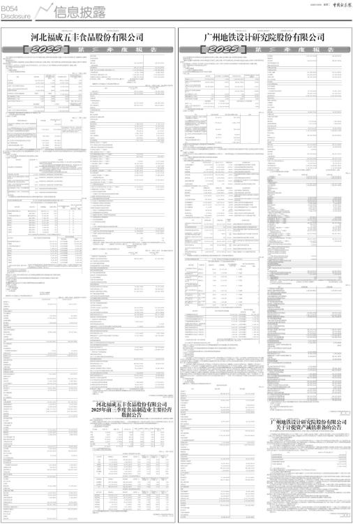 证券代码:600965 证券简称:福成股份 本公司董事会及全体董事保证本公告内容不存在任何虚假记载、误导性陈述或者重大遗漏,并对其内容的真实性、准确性和完整性承担法律责任。 重要内容提示: 公司董事会及董事、高级管理人员保证季度报告内容的真实、准确、完整,不存在虚假记载、误导性陈述或重大遗漏,并承担个别和连带的法律责任。 公司负责人、主管会计工作负责人及会计机构负责人(会计主管人员)保证季度报告中财务信息的真实、准确、完整。 第三季度财务报表是否经审计 □是 √否 一、主要财务数据 (一)主要会计数据和财务指标 单位:元 币种:人民币 ■ 注:“本报告期”指本季度初至本季度末3个月期间,下同。 (二)非经常性损益项目和金额 √适用 □不适用 单位:元 币种:人民币 ■ 对公司将《公开发行证券的公司信息披露解释性公告第1号一一非经常性损益》未列举的项目认定为非经常性损益项目且金额重大的,以及将《公开发行证券的公司信息披露解释性公告第1号一一非经常性损益》中列举的非经常性损益项目界定为经常性损益的项目,应说明原因。 □适用 √不适用 (三)主要会计数据、财务指标发生变动的情况、原因 √适用 □不适用 ■ 二、股东信息 (一)普通股股东总数和表决权恢复的优先股股东数量及前十名股东持股情况表 单位:股 ■ 持股5%以上股东、前10名股东及前10名无限售流通股股东参与转融通业务出借股份情况 □适用 √不适用 前10名股东及前10名无限售流通股股东因转融通出借/归还原因导致较上期发生变化 □适用 √不适用 三、其他提醒事项 需提醒投资者关注的关于公司报告期经营情况的其他重要信息 □适用 √不适用 四、季度财务报表 (一)审计意见类型 □适用 √不适用 (二)财务报表 合并资产负债表 2025年9月30日 编制单位:河北福成五丰食品股份有限公司 单位:元 币种:人民币 审计类型:未经审计 ■ ■ 公司负责人:李良 主管会计工作负责人:甄兰兰 会计机构负责人:张晶 合并利润表 2025年1一9月 编制单位:河北福成五丰食品股份有限公司 单位:元 币种:人民币 审计类型:未经审计 ■ 本期发生同一控制下企业合并的,被合并方在合并前实现的净利润为:0.00元, 上期被合并方实现的净利润为:0.00元。 公司负责人:李良 主管会计工作负责人:甄兰兰 会计机构负责人:张晶 合并现金流量表 2025年1一9月 编制单位:河北福成五丰食品股份有限公司 单位:元 币种:人民币 审计类型:未经审计 ■ 公司负责人:李良 主管会计工作负责人:甄兰兰 会计机构负责人:张晶 2025年起首次执行新会计准则或准则解释等涉及调整首次执行当年年初的财务报表 □适用 √不适用 特此公告。 河北福成五丰食品股份有限公司董事会 2025年10月28日 股票代码:600965 股票简称:福成股份 公告编号:2025-028 河北福成五丰食品股份有限公司 2025年前三季度食品制造业主要经营数据公告 本公司董事会及全体董事保证本公告内容不存在任何虚假记载、误导性陈述或者重大遗漏,并对其内容的真实性、准确性和完整性承担个别及连带责任。 根据《上海证券交易所上市公司自律监管指引第3号一一行业信息披露》及《上海证券交易所上市公司自律监管指引第3号-第十四号食品制造》的要求,河北福成五丰食品股份有限公司现将2025年前三季度食品制造业主要经营数据披露如下: 一、食品制造业主要经营数据 1、报告期内细分产品情况 ■ 2、注:上述经营数据未经审计。 3、报告期内主营业务构成情况 单位:元 币种:人民币 ■ 注:以上财务数据未经审计,且均为内部抵消后财务数据。 特此公告。 河北福成五丰食品股份有限公司 二〇二五年十月二十八日