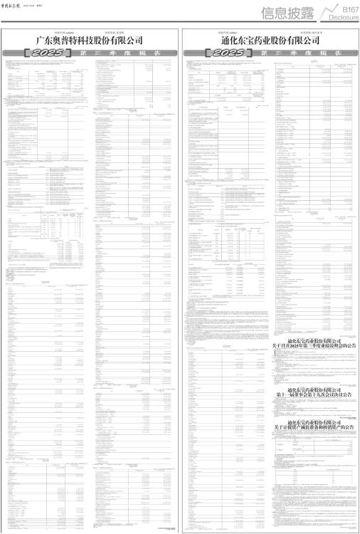 证券代码:600867 证券简称:通化东宝 本公司董事会及全体董事保证本公告内容不存在任何虚假记载、误导性陈述或者重大遗漏,并对其内容的真实性、准确性和完整性承担法律责任。 重要内容提示: 公司董事会、监事会及董事、监事、高级管理人员保证季度报告内容的真实、准确、完整,不存在虚假记载、误导性陈述或重大遗漏,并承担个别和连带的法律责任。 公司负责人、主管会计工作负责人及会计机构负责人(会计主管人员)保证季度报告中财务信息的真实、准确、完整。 第三季度财务报表是否经审计 □是 √否 一、主要财务数据 (一)主要会计数据和财务指标 单位:元 币种:人民币 ■ 注:“本报告期”指本季度初至本季度末3个月期间,下同。 (二)非经常性损益项目和金额 √适用 □不适用 单位:元 币种:人民币 ■ 对公司将《公开发行证券的公司信息披露解释性公告第1号一一非经常性损益》未列举的项目认定为非经常性损益项目且金额重大的,以及将《公开发行证券的公司信息披露解释性公告第1号一一非经常性损益》中列举的非经常性损益项目界定为经常性损益的项目,应说明原因。 □适用 √不适用 (三)主要会计数据、财务指标发生变动的情况、原因 √适用 □不适用 ■ 二、股东信息 (一)普通股股东总数和表决权恢复的优先股股东数量及前十名股东持股情况表 单位:股 ■ 持股5%以上股东、前10名股东及前10名无限售流通股股东参与转融通业务出借股份情况 □适用 √不适用 前10名股东及前10名无限售流通股股东因转融通出借/归还原因导致较上期发生变化 □适用 √不适用 三、其他提醒事项 需提醒投资者关注的关于公司报告期经营情况的其他重要信息 √适用 □不适用 1、关于协议转让厦门特宝生物工程股份有限公司的情况 公司于2025年5月22日与西藏信托有限公司(代表“西藏信托-金桐35号集合资金信托计划”)签署了《股份转让协议》,以协议转让方式转让厦门特宝生物工程股份有限公司(证券代码:688278)无限售条件流通股股份23,187,600股,占厦门特宝生物工程股份有限公司总股本的5.70%,转让价格56.12元/股,转让价款总额为人民币1,301,288,112元。 公司已于2025年7月3日取得中国证券登记结算有限责任公司出具的《证券过户登记确认书》,过户日期为2025年7月2日,过户数量23,187,600股,股份性质为无限售流通股,股份协议转让过户登记手续已办理完毕。 具体内容详见公司于2025年7月4日在中国证券报、上海证券报及上海证券交易所网站(www.sse.com.cn)披露的《通化东宝关于协议转让特宝生物部分股份完成过户登记的公告》。 2、关于控股股东增持公司股份的进展情况 基于对未来发展前景的信心和对公司价值的高度认可,控股股东东宝实业集团股份有限公司计划通过上海证券交易所以集中竞价交易方式增持公司股份。增持比例不低于公司总股本1%,即19,817,341股,不超过公司总股本2%,即39,634,681股。实施期限为自2024年10月31日起12个月内(即2024年10月31日至2025年10月30日)。内容详见公司于2024年10月31日在中国证券报、上海证券报及上海证券交易所网站(http://www.sse.com.cn)披露的《通化东宝关于控股股东增持公司股份计划的公告》。 截至2025年10月27日,已增持股份22,124,109股,占公司当前总股本的1.13%,增持计划尚未实施完毕。 3、关于2025年员工持股计划情况 2025年9月2日,公司召开第十一届董事会第十七次会议、第十一届监事会第十一次会议,于2025年9月18日召开2025年第二次临时股东会,审议通过了《关于〈通化东宝2025年员工持股计划(草案)〉及其摘要的议案》等相关议案,同意公司实施2025年员工持股计划。2025年10月9日,公司收到中国证券登记结算有限责任公司出具的《证券过户登记确认书》,确认公司回购专用证券账户所持有的929.00万股公司标的股票已于2025年9月30日非交易过户至“通化东宝药业股份有限公司-2025年员工持股计划”(证券账户号码:B887676110),过户价格为4.29元/股。 内容详见公司分别于2025年9月3日、2025年10月10日在上海证券交易所网站(www.sse.com.cn)披露的《通化东宝2025年员工持股计划(草案)》和中国证券报、上海证券报及上海证券交易所网站(www.sse.com.cn)披露的《通化东宝关于2025年员工持股计划完成股票非交易过户的公告》。 4、关于以集中竞价交易方式回购公司股份的情况 2025年10月17日,公司召开第十一届董事会第十八次会议,审议通过了《关于以集中竞价交易方式回购公司股份方案的议案》等相关议案。基于对公司未来发展前景的信心和对公司价值的高度认可,公司计划以自有资金通过上海证券交易所交易系统以集中竞价交易的方式回购公司股份用于员工持股计划及/或股权激励,本次回购实施期限为自董事会审议通过本次回购股份方案之日起6个月内,资金总额不低于人民币2,000万元(含),不超过人民币4,000万元(含),预计回购股份数量不低于200万股,占公司当前总股本的0.10%,不超过400万股,占公司总股本的0.20%,具体回购股份的数量以回购期满时实际回购的股份数量为准,回购股份价格不超过人民币10元/股(含)。内容详见公司于2025年10月18日在中国证券报、上海证券报及上海证券交易所网站(http://www.sse.com.cn)披露的《通化东宝关于以集中竞价交易方式回购公司股份方案的公告》《通化东宝关于以集中竞价交易方式回购公司股份的回