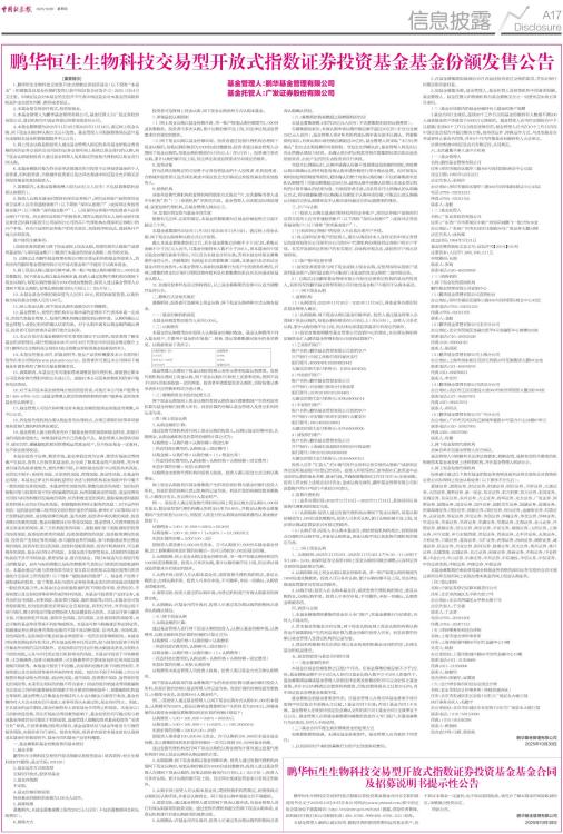 鹏华恒生生物科技交易型开放式指数证券投资基金基金合同及招募说明书提示性公告