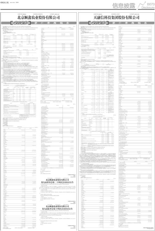 证券代码:000860 证券简称:顺鑫农业 公告编号:2025-027 本公司及董事会全体成员保证信息披露的内容真实、准确、完整,没有虚假记载、误导性陈述或重大遗漏。 重要内容提示: 1.董事会、监事会及董事、监事、高级管理人员保证季度报告的真实、准确、完整,不存在虚假记载、误导性陈述或重大遗漏,并承担个别和连带的法律责任。 2.公司负责人、主管会计工作负责人及会计机构负责人(会计主管人员)声明:保证季度报告中财务信息的真实、准确、完整。 3.第三季度财务会计报告是否经过审计 □是 √否 一、主要财务数据 (一) 主要会计数据和财务指标 公司是否需追溯调整或重述以前年度会计数据 □是 √否 ■ (二) 非经常性损益项目和金额 √适用 □不适用 单位:元 ■ 其他符合非经常性损益定义的损益项目的具体情况: □适用 √不适用 公司不存在其他符合非经常性损益定义的损益项目的具体情况。 将《公开发行证券的公司信息披露解释性公告第1号一一非经常性损益》中列举的非经常性损益项目界定为经常性损益项目的情况说明 □适用 √不适用 公司不存在将《公开发行证券的公司信息披露解释性公告第1号一一非经常性损益》中列举的非经常性损益项目界定为经常性损益的项目的情形。 (三) 主要会计数据和财务指标发生变动的情况及原因 √适用 □不适用 1、2025年9月30日应收账款比年初增加2,272.43万元,增长了112.71%,主要由于应收客户货款增加。 2、2025年9月30日存货比年初减少84,357.33万元,下降了36.80%,主要由于白酒销售,存货减少。 3、2025年9月30日在建工程比年初增加5,165.39万元,增长了109.31%,主要由于增加猪舍建设。 4、2025年9月30日使用权资产比年初减少1,709.08万元,下降了50.00%,主要由于按期确认使用权资产折旧。 5、2025年9月30日长期待摊费用比年初减少302.34万元,下降了55.00%,主要由于按期摊销广告代言费。 6、2025年9月30日递延所得税资产比年初减少939.96万元,下降了32.14%,主要由于以前期间确认的递延所得税资产在本期实现,公司本报告期转回暂时性差异。 7、2025年9月30日其他非流动资产比年初减少642.57万元,下降了100.00%,主要由于以前期间确认的预付工程款在本期转入在建工程。 8、2025年9月30日应付账款比年初减少48,969.77万元,下降了51.98%,主要由于本期支付应付客户货款。 9、2025年9月30日预收款项比年初减少454.39万元,下降了35.03%,主要由于本期按期结转预收租金。 10、2025年9月30日合同负债比年初减少131,547.56万元,下降了74.83%,主要由于本期合同履约完成,将预收货款结转收入。 11、2025年9月30日应付职工薪酬比年初减少5,241.78万元,下降了53.81%,主要由于上年度计提的职工奖金在本年发放。 12、2025年9月30日应交税费比年初减少7,187.18万元,下降了48.31%,主要由于本年上缴了上年期末计提的税费。 13、2025年9月30日一年内到期的非流动负债比年初增加44,057.04万元,增长了114.85%,主要由于一年内到期的长期借款增加。 14、2025年9月30日其他流动负债比年初减少17,270.13万元,下降了75.72%,主要由于合同负债减少。 15、2025年9月30日长期借款比年初减少88,873.12万元,下降了62.46%,主要由于长期借款提前归还及转入一年内到期的长期借款的影响。 16、2025年1月至9月财务费用比上年同期减少6,325.95万元,下降了1313.42%,主要由于利息收入增加。 17、2025年1月至9月信用减值损失比上年同期减少297.24万元,下降了99.64%,主要由于以单项金融工具或金融工具组合为基础评估预期信用风险和计量预期信用损失减少。 18、2025年1月至9月资产减值收益比上年同期减少527.02万元,下降了100.00%,主要由于同期存货存在可变现净值提升因此转回存货跌价准备的情况,本年无此事项。 19、2025年1月至9月资产处置收益比上年同期减少3.75万元,下降了93.98%,主要由于非流动资产处置利得减少。 20、2025年1月至9月营业外支出比上年同期增加672.71万元,增长了2753.20%,主要由于非流动资产报废损失增加。 21、2025年1月至9月所得税费用比上年同期减少9,820.92万元,下降了40.10%,主要由于白酒板块利润减少,所得税费用减少。 22、2025年1月至9月筹资活动产生的现金流量净额比上年同期减少14,846.87万元,下降了14011.26%,主要由于本期支付股利的影响。 二、股东信息 (一) 普通股股东总数和表决权恢复的优先股股东数量及前十名股东持股情况表 单位:股 ■ 持股5%以上股东、前10名股东及前10名无限售流通股股东参与转融通业务出借股份情况 □适用 √不适用 前10名股东及前10名无限售流通股股东因转融通出借/归还原因导致较上期发生变化 □适用 √不适用 (二) 公司优先股股东总数及前10名优先股股东持股情况表 □适用 √不适用 三、其他重要事项 □适用 √不适用 四、季度财务报表 (一) 财务报表 1、合并资产负债表 编制单位:北京顺鑫农业股份有限公司 2025年09月30日 单位:元 ■ 法定代表人:李颖林 主管会计工作负责人:董文彬 会计机构负责人:李艳娟 2、合并年初到报告期末利润表 单位:元 ■ 本期发生同一控制下企业合并的,被合并方在合并前实现的净利润为:0.00元,上期被合并方实现的净利润为:0.00元。 法定代表人:李颖林 主管会计工作负责人:董文彬 会计机构负责人:李艳娟 3、合并年初到报告期末现金流量表 单位:元 ■ (二) 2025年起首次执行新会计准则调整首次执行当年年初财务