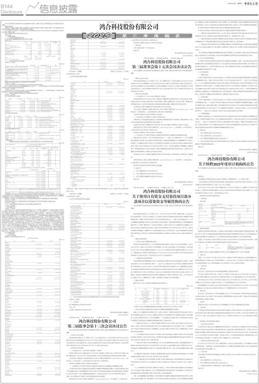 本公司及董事会全体成员保证信息披露的内容真实、准确、完整,没有虚假记载、误导性陈述或重大遗漏。 重要内容提示: 1.董事会、监事会及董事、监事、高级管理人员保证季度报告的真实、准确、完整,不存在虚假记载、误导性陈述或重大遗漏,并承担个别和连带的法律责任。 2.公司负责人、主管会计工作负责人及会计机构负责人(会计主管人员)声明:保证季度报告中财务信息的真实、准确、完整。 3.第三季度财务会计报告是否经过审计 □是 √否 一、主要财务数据 (一) 主要会计数据和财务指标 公司是否需追溯调整或重述以前年度会计数据 □是 √否 ■ (二) 非经常性损益项目和金额 √适用 □不适用 单位:元 ■ 其他符合非经常性损益定义的损益项目的具体情况: □适用 √不适用 公司不存在其他符合非经常性损益定义的损益项目的具体情况。 将《公开发行证券的公司信息披露解释性公告第1号一一非经常性损益》中列举的非经常性损益项目界定为经常性损益项目的情况说明 □适用 √不适用 公司不存在将《公开发行证券的公司信息披露解释性公告第1号一一非经常性损益》中列举的非经常性损益项目界定为经常性损益的项目的情形。 (三) 主要会计数据和财务指标发生变动的情况及原因 √适用 □不适用 资产负债表报表项目变动: 单位:元 ■ 利润表报表项目变动: 单位:元 ■ 现金流量表报表项目变动: 单位:元 ■ 二、股东信息 (一) 普通股股东总数和表决权恢复的优先股股东数量及前十名股东持股情况表 单位:股 ■ 注:截至2025年9月30日,鸿合科技股份有限公司回购专用证券账户持有公司股票2,398,850股,占公司总股本的1.01%,持股数量位居公司当期全体股东第8名和当期全体无限售条件股东第8名,但根据现行披露规则,不纳入前10名股东和前10名无限售条件股东列示。 持股5%以上股东、前10名股东及前10名无限售流通股股东参与转融通业务出借股份情况 □适用 √不适用 前10名股东及前10名无限售流通股股东因转融通出借/归还原因导致较上期发生变化 □适用 √不适用 (二) 公司优先股股东总数及前10名优先股股东持股情况表 □适用 √不适用 三、其他重要事项 √适用 □不适用 2025年6月10日,合肥瑞丞私募基金管理有限公司(以下简称“合肥瑞丞”,自身并代其作为普通合伙人暨执行事务合伙人的用于实际执行本次交易的主体,即“瑞丞基金”)与公司实际控制人XING XIUQING、邢正以及一致行动人鸿达成有限公司(以下简称“鸿达成”)、持股5%以上股东王京和张树江正式签署《合肥瑞丞私募基金管理有限公司与鸿达成有限公司及邢正、王京、张树江关于鸿合科技股份有限公司之股份转让协议》(以下简称“《股份转让协议》”),瑞丞基金拟协议收购鸿达成及邢正、王京、张树江合计持有的公司59,159,978股股份,占公司股份总数的25.00%。同时,张树江与合肥瑞丞(自身并代其作为普通合伙人暨执行事务合伙人的用于实际执行本次交易的主体,即“瑞丞基金”)签署了《表决权放弃协议》,张树江拟放弃剩余持有的公司17,860,872股股份(占公司股份总数的7.55%)对应的表决权。鸿达成、XING XIUQING、邢正、王京和张树江出具了《关于不谋求上市公司控制权的承诺函》。本次权益变动完成后,瑞丞基金将取得公司59,159,978股股份及对应表决权(占公司股份总数的25.00%),结合《股份转让协议》中的相关安排及XING XIUQING、鸿达成、邢正、王京和张树江出具的《关于不谋求上市公司控制权的承诺函》,合肥瑞丞将成为公司的间接控股股东,公司实际控制人由XING XIUQING、邢正变更为无实际控制人。具体内容详见公司于2025年6月11日刊登在巨潮资讯网(www.cninfo.com.cn)、《证券时报》、《中国证券报》、《上海证券报》和《证券日报》上的《关于实际控制人及其一致行动人、5%以上股东签署〈股份转让协议〉与〈表决权放弃协议〉暨公司控制权拟发生变更的公告》(公告编号:2025-042)。 四、季度财务报表 (一) 财务报表 1、合并资产负债表 编制单位:鸿合科技股份有限公司 2025年09月30日 单位:元 ■ ■ 法定代表人:孙晓蔷 主管会计工作负责人:冷宏俊 会计机构负责人:谢芳 2、合并年初到报告期末利润表 单位:元 ■ 本期发生同一控制下企业合并的,被合并方在合并前实现的净利润为:0.00元,上期被合并方实现的净利润为:0.00元。 法定代表人:孙晓蔷 主管会计工作负责人:冷宏俊 会计机构负责人:谢芳 3、合并年初到报告期末现金流量表 单位:元 ■ (二) 2025年起首次执行新会计准则调整首次执行当年年初财务报表相关项目情况 □适用 √不适用 (三) 审计报告 第三季度财务会计报告是否经过审计 □是 √否 公司第三季度财务会计报告未经审计。 鸿合科技股份有限公司董事会 2025年10月30日 证券代码:002955 证券简称:鸿合科技 公告编号:2025-060 鸿合科技股份有限公司 第三届监事会第十三次会议决议公告 本公司及监事会全体成员保证信息披露的内容真实、准确、完整,没有虚假记载、误导性陈述或重大遗漏。 一、监事会会议召开情况 鸿合科技股份有限公司(以下简称“公司”)第三届监事会第十三次会议通知于2025年10月24日以邮件形式向公司全体监事送出,并于2025年10月29日以通讯方式在北辰时代大厦公司会议室召开,会议应出席监事3名,实际出席监事3名。监事会主席龙旭东